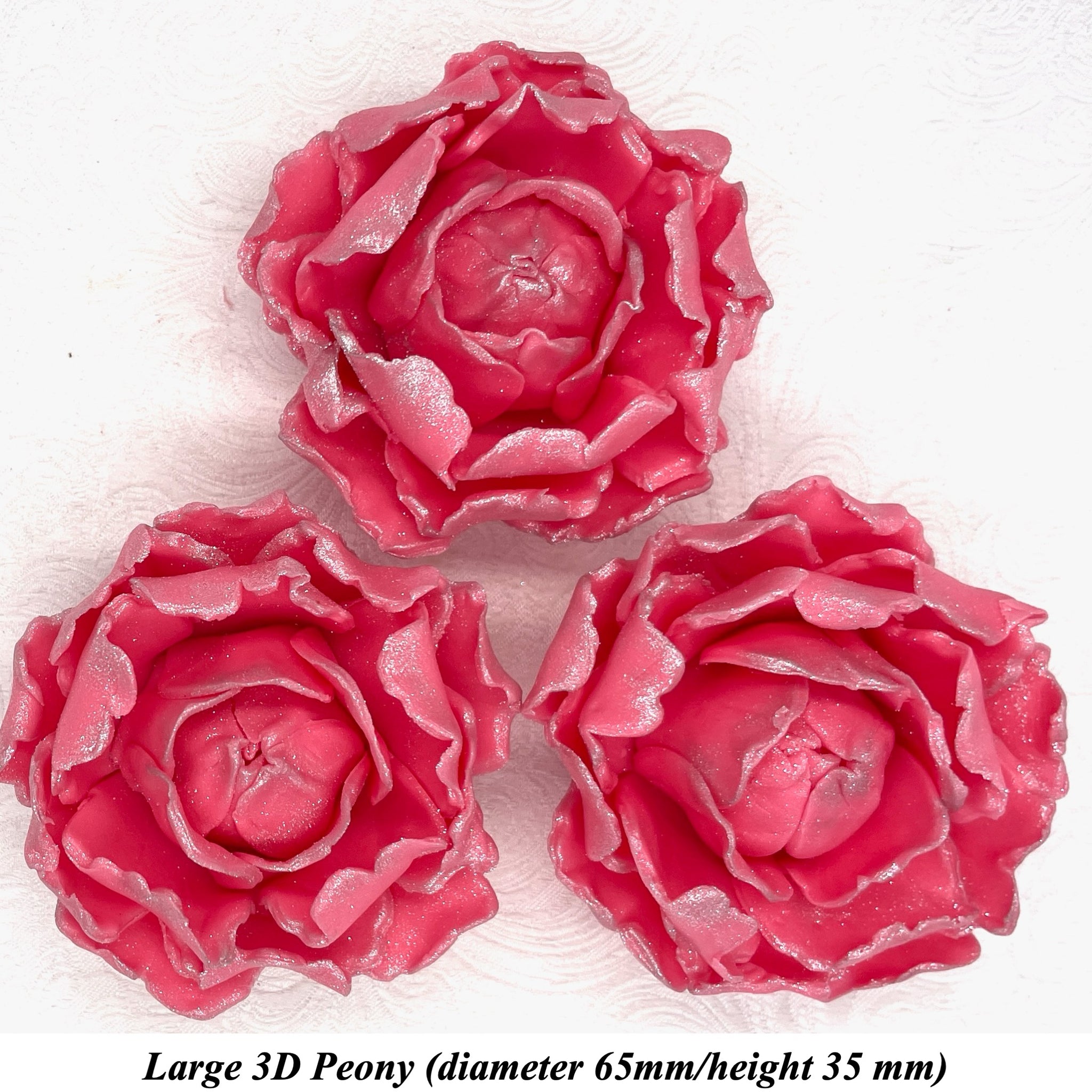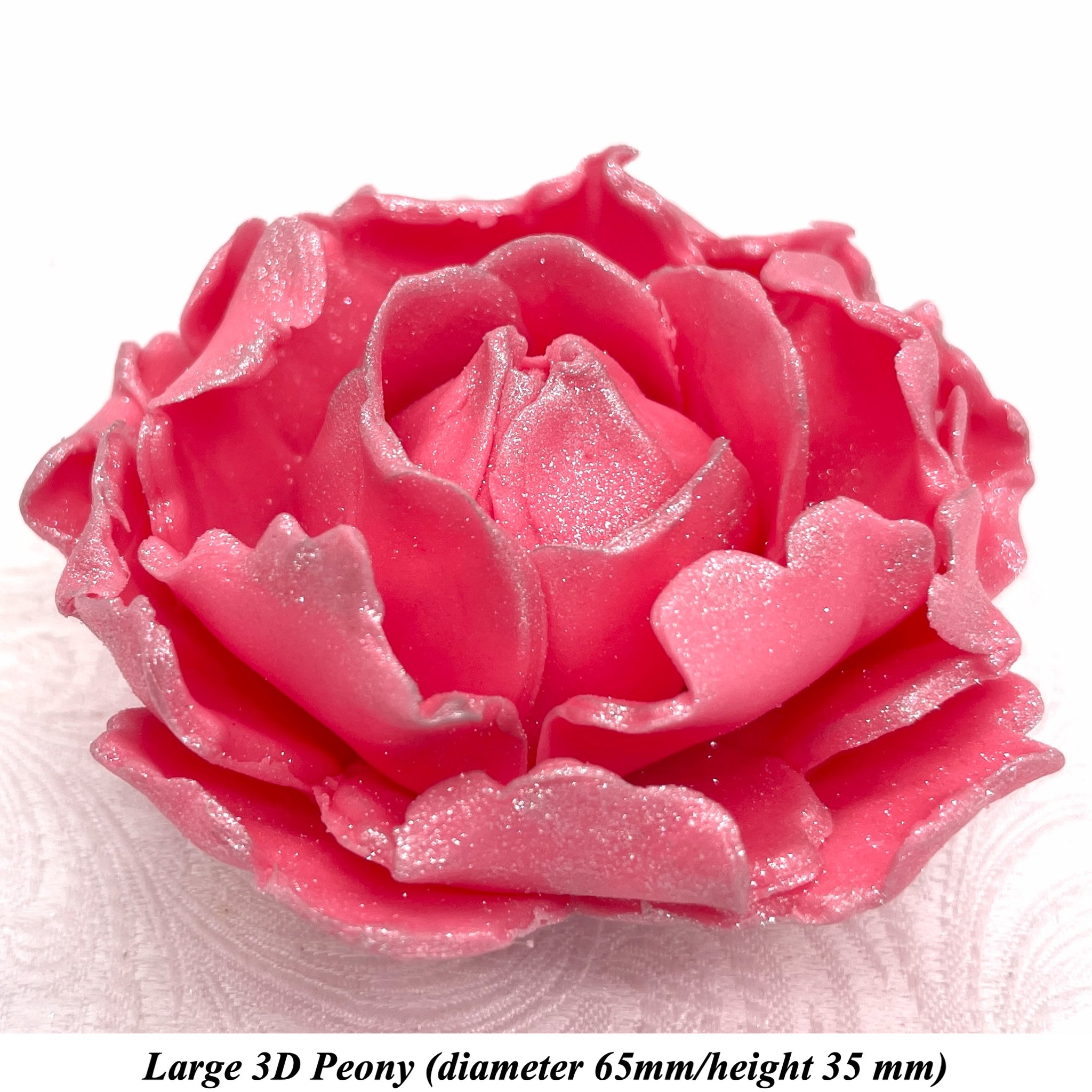 Each Large Peony measures approximately 65mm (2.5 inches) in diameter and 35mm (1.3 inches) in height at the widest points.It is individually sculptured by hand with a very large number of separate petals (25 in total), each carefully created, hand-veined & contoured to create a very realistic, lifelike flower.