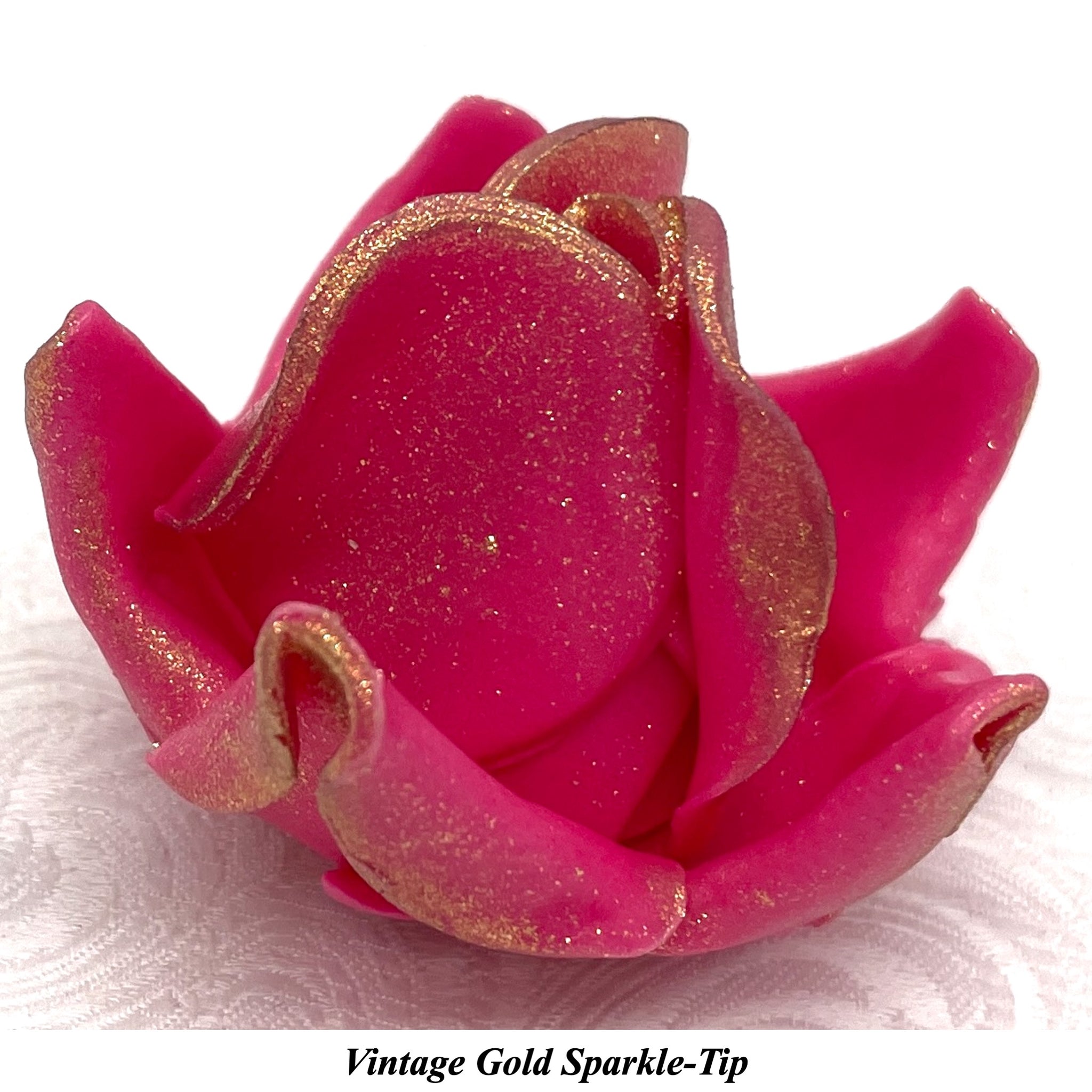 Vintage Gold Sparkle-Tip Fuchsia Pink 3D Non-Wired Large Sugar Peonies