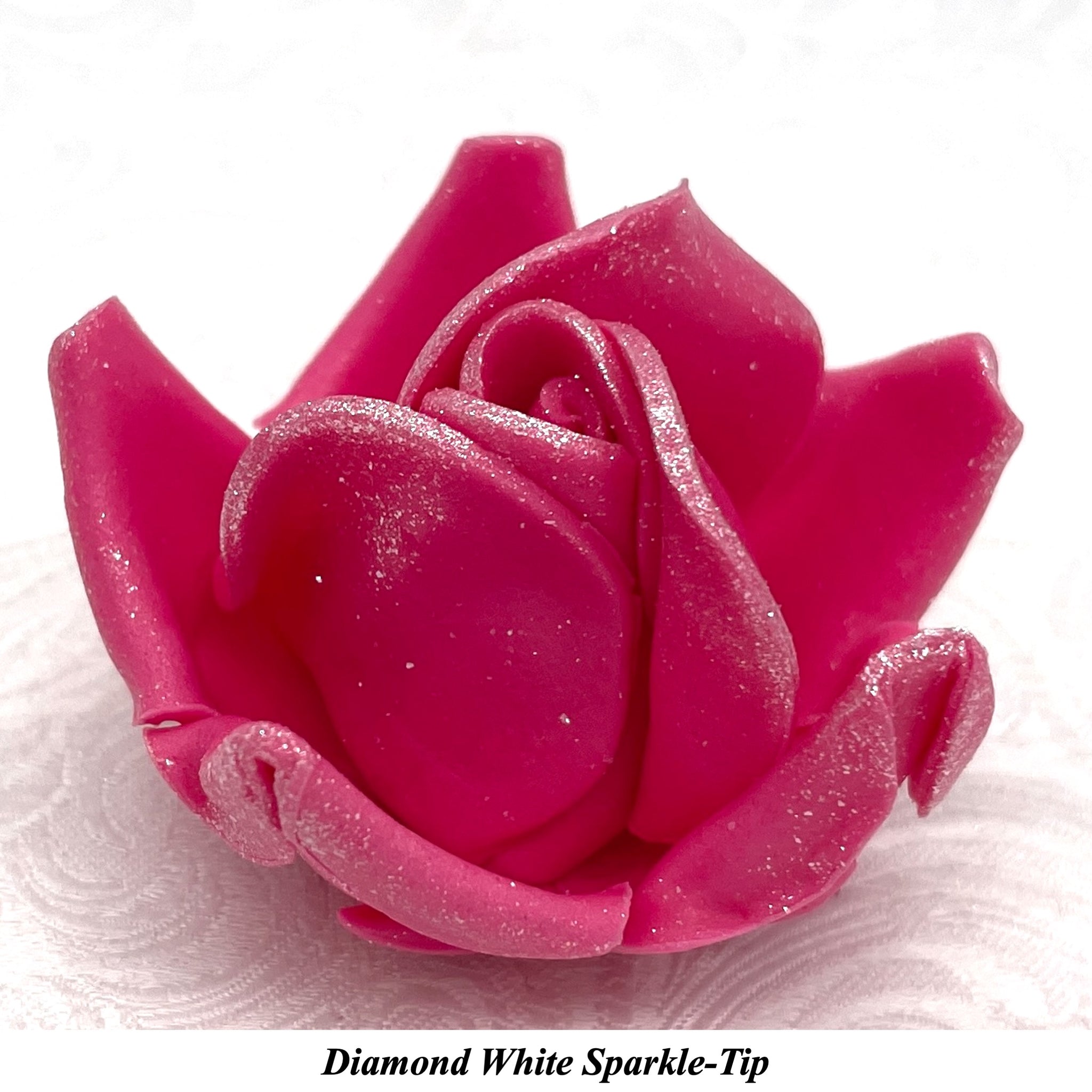 These special-finish peonies are produced using an edible sparkle dust hand-applied on the tips & edges of all the individual peony petals creating a beautiful shimmering effect.