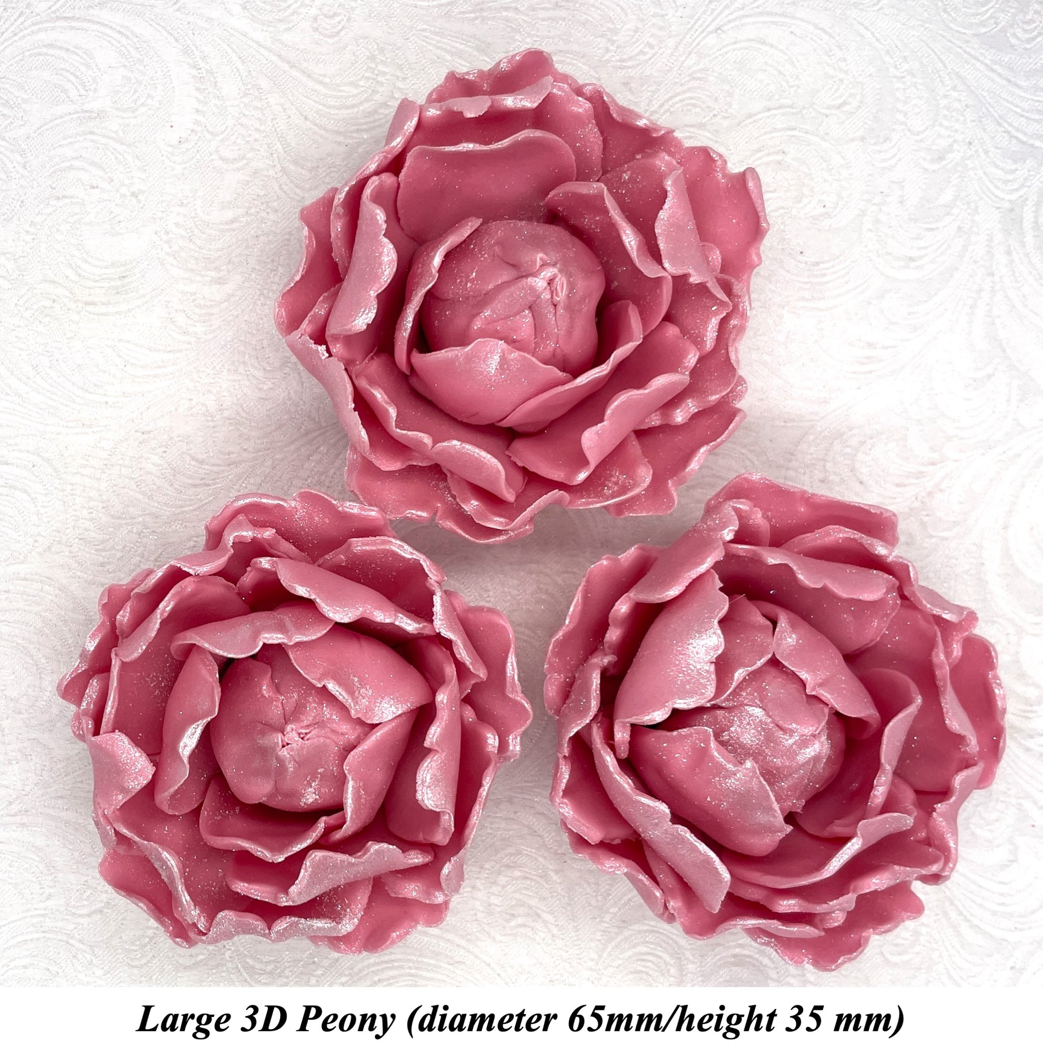 Each Large Peony measures approximately 65mm (2.5 inches) in diameter and 35mm (1.3 inches) in height at the widest points.It is individually sculptured by hand with a very large number of separate petals (25 in total), each carefully created, hand-veined & contoured to create a very realistic, lifelike flower.