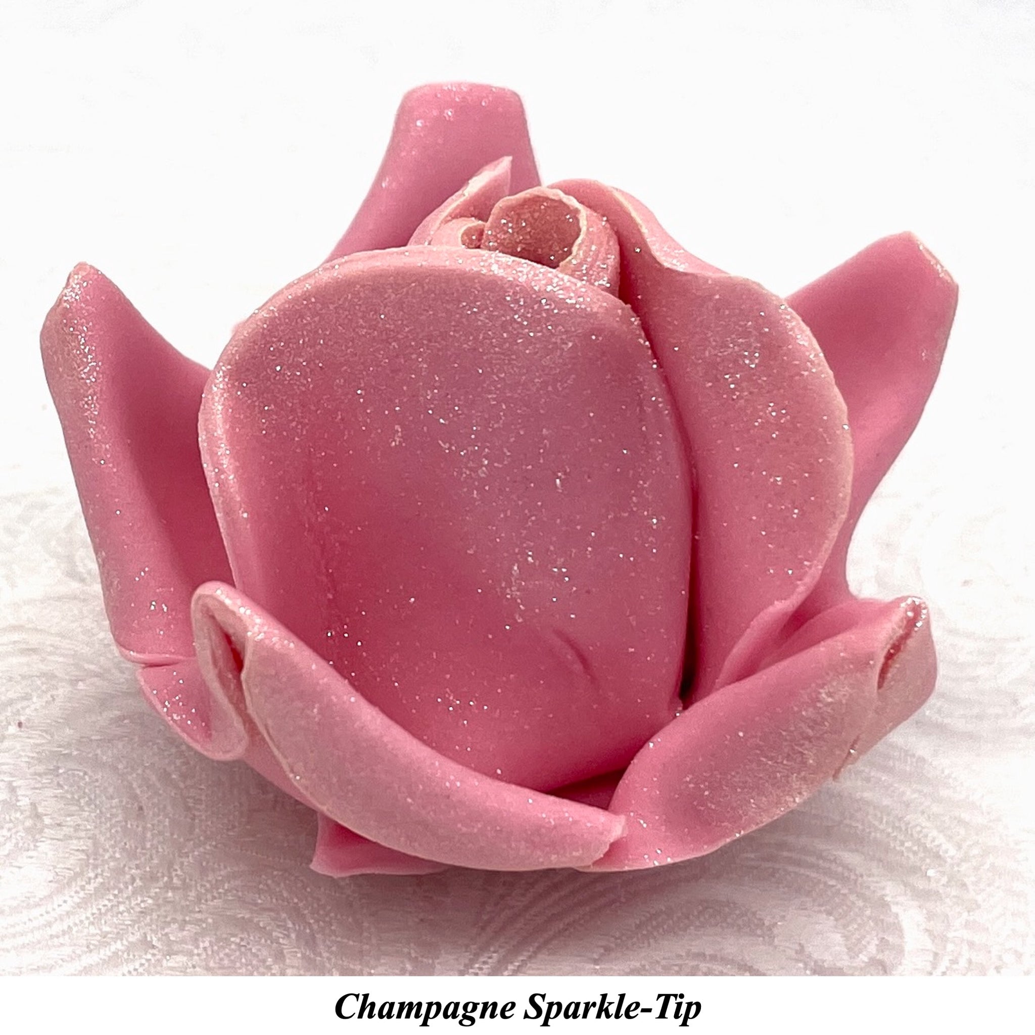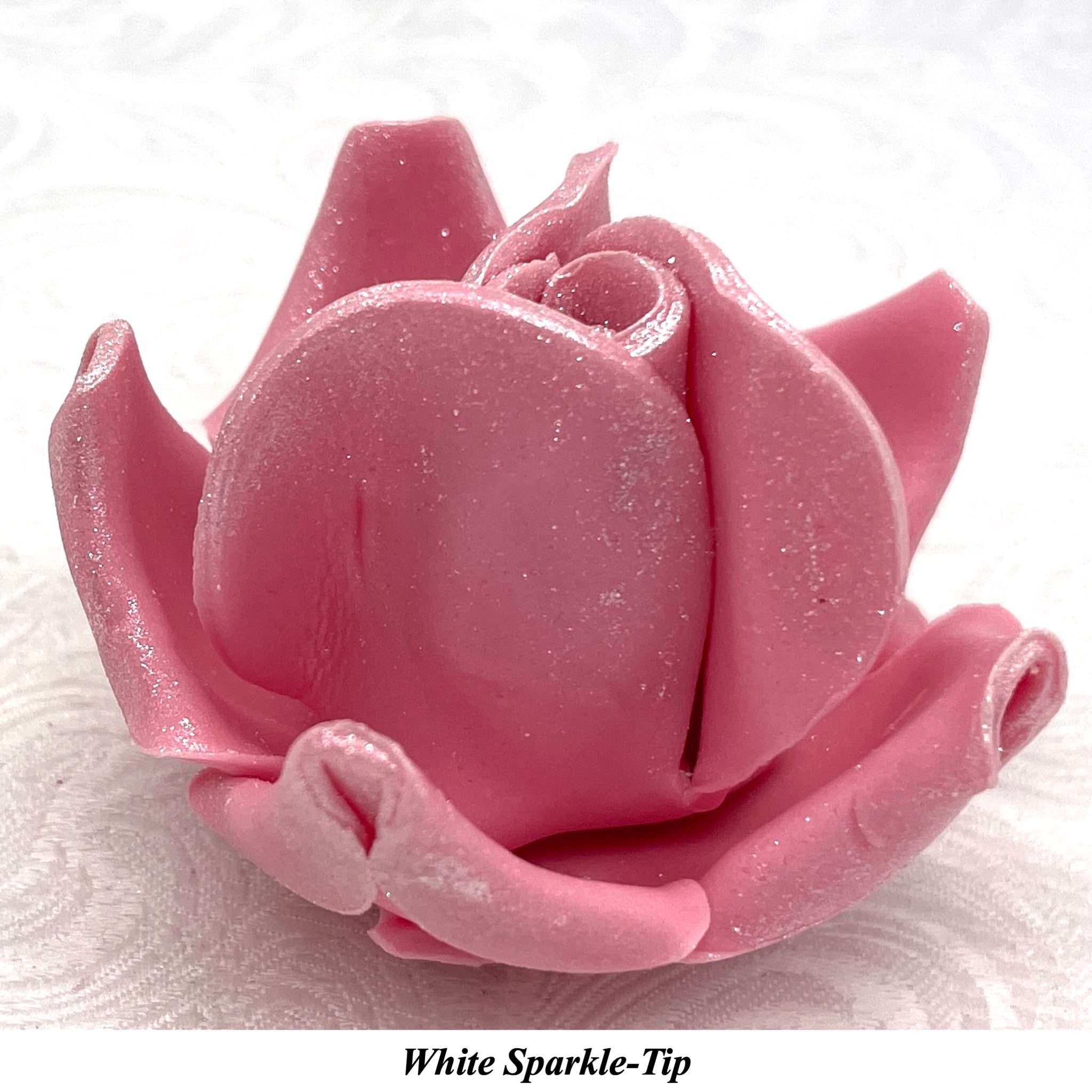 These special-finish peonies are produced using an edible sparkle dust hand-applied on the tips & edges of all the individual peony petals creating a beautiful shimmering effect.
