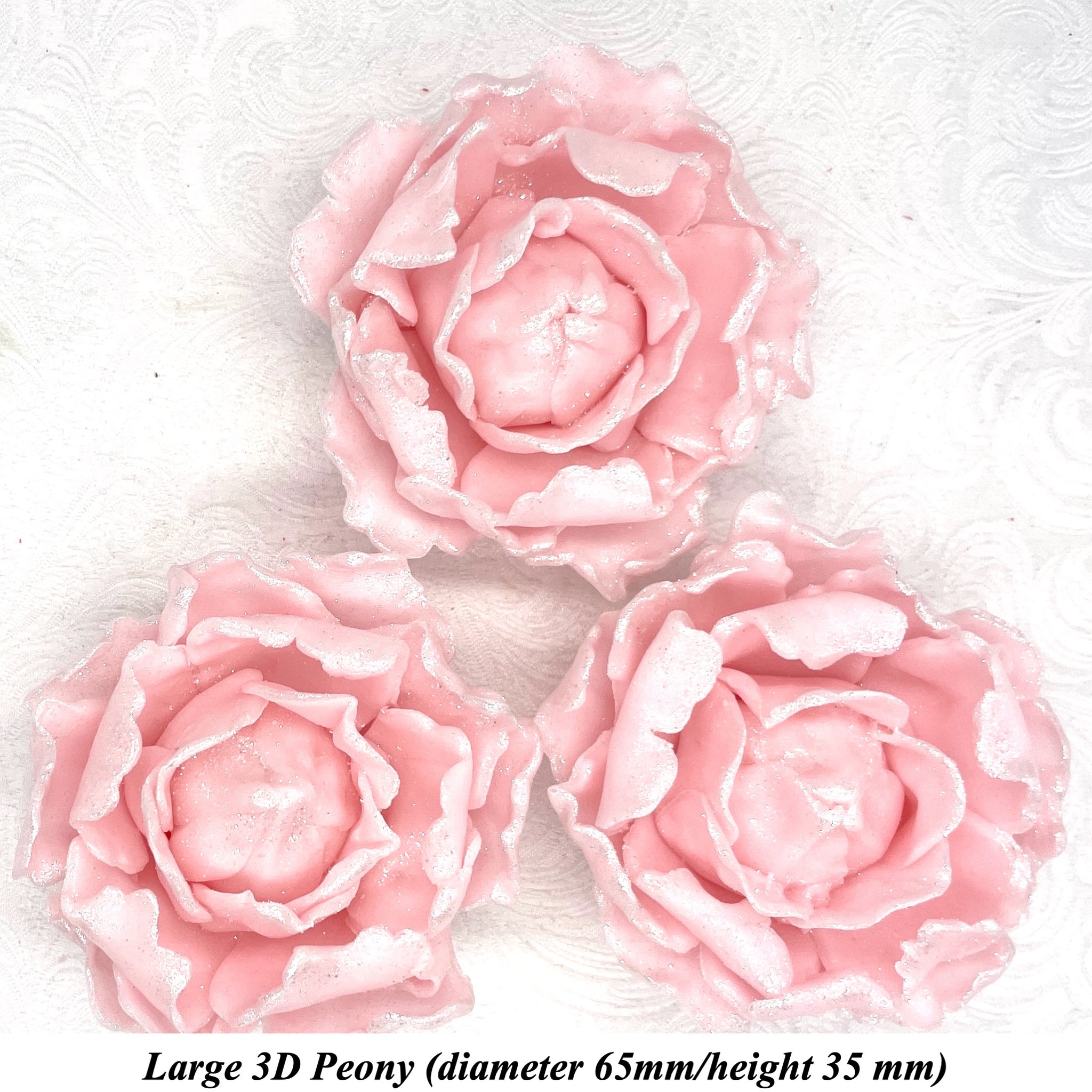 Each Large Peony measures approximately 65mm (2.5 inches) in diameter and 35mm (1.3 inches) in height at the widest points.It is individually sculptured by hand with a very large number of separate petals (25 in total), each carefully created, hand-veined & contoured to create a very realistic, lifelike flower.
