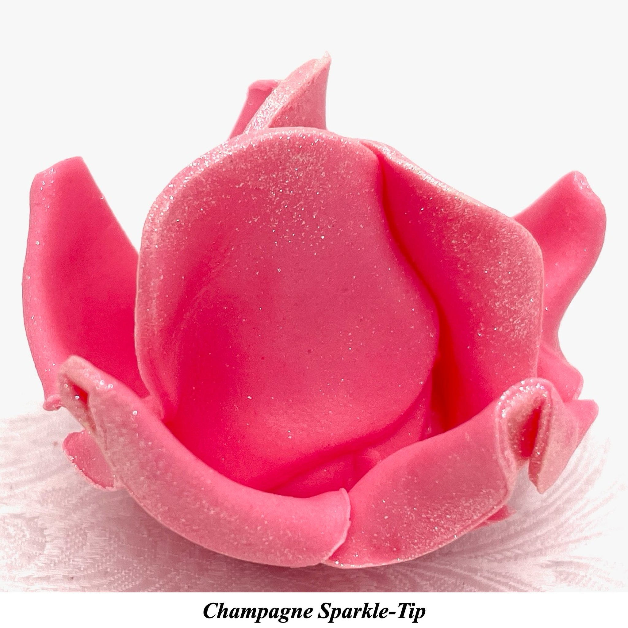 This listing features Champagne Sparkle-Tip Sugar Roses in the shade Petal Pink (Light).