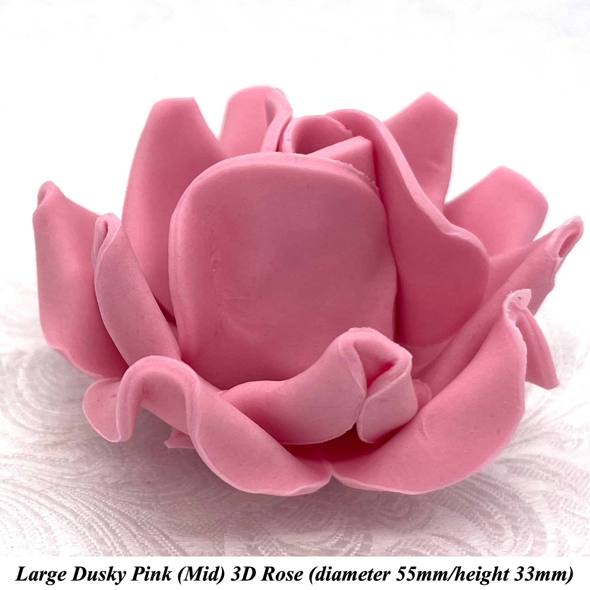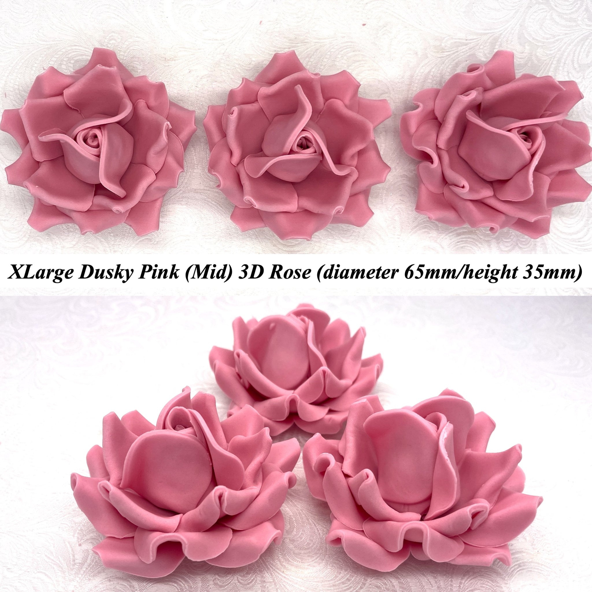 Dusky PInk 3D Sugar Non-Wired Roses 3 SHADES 4 SIZES