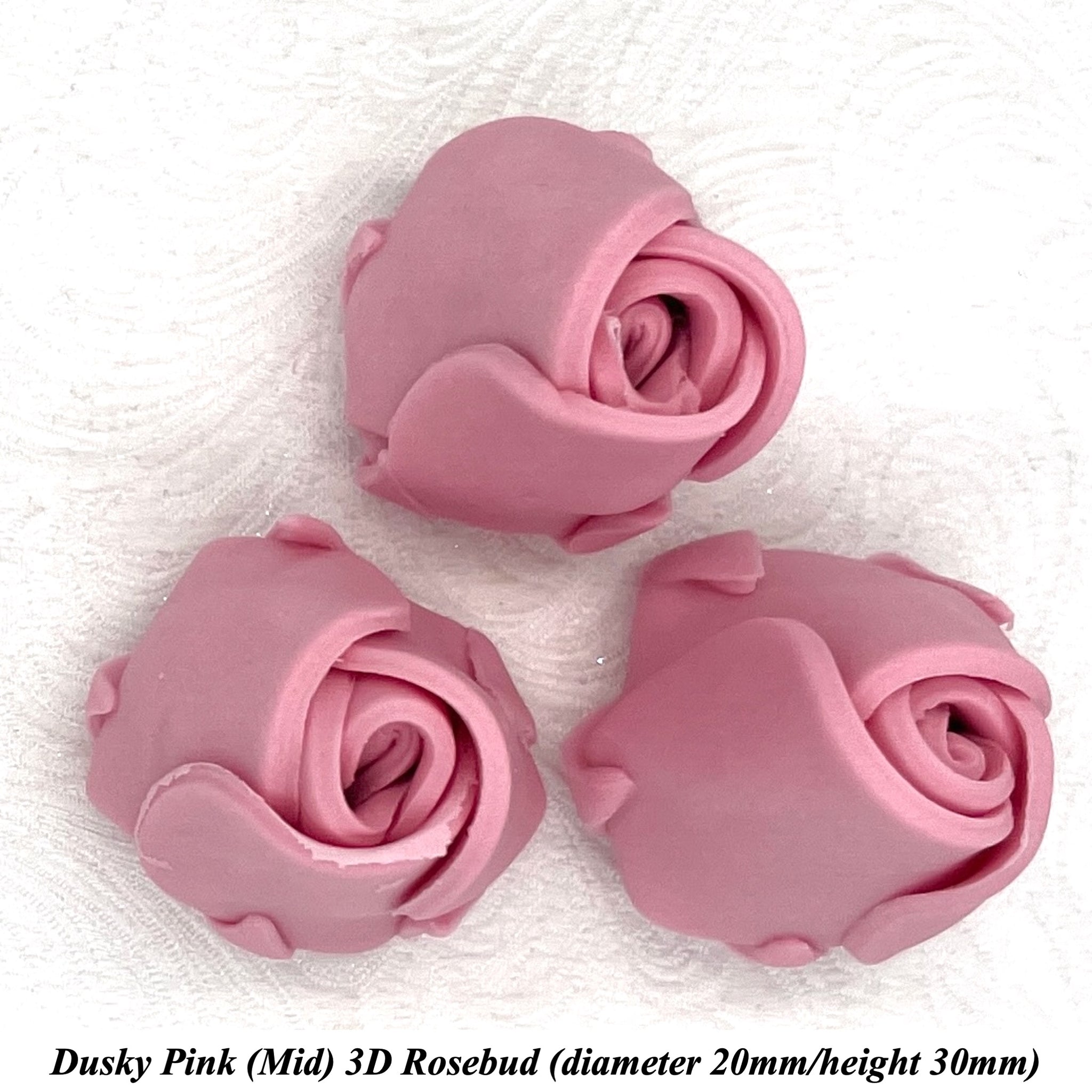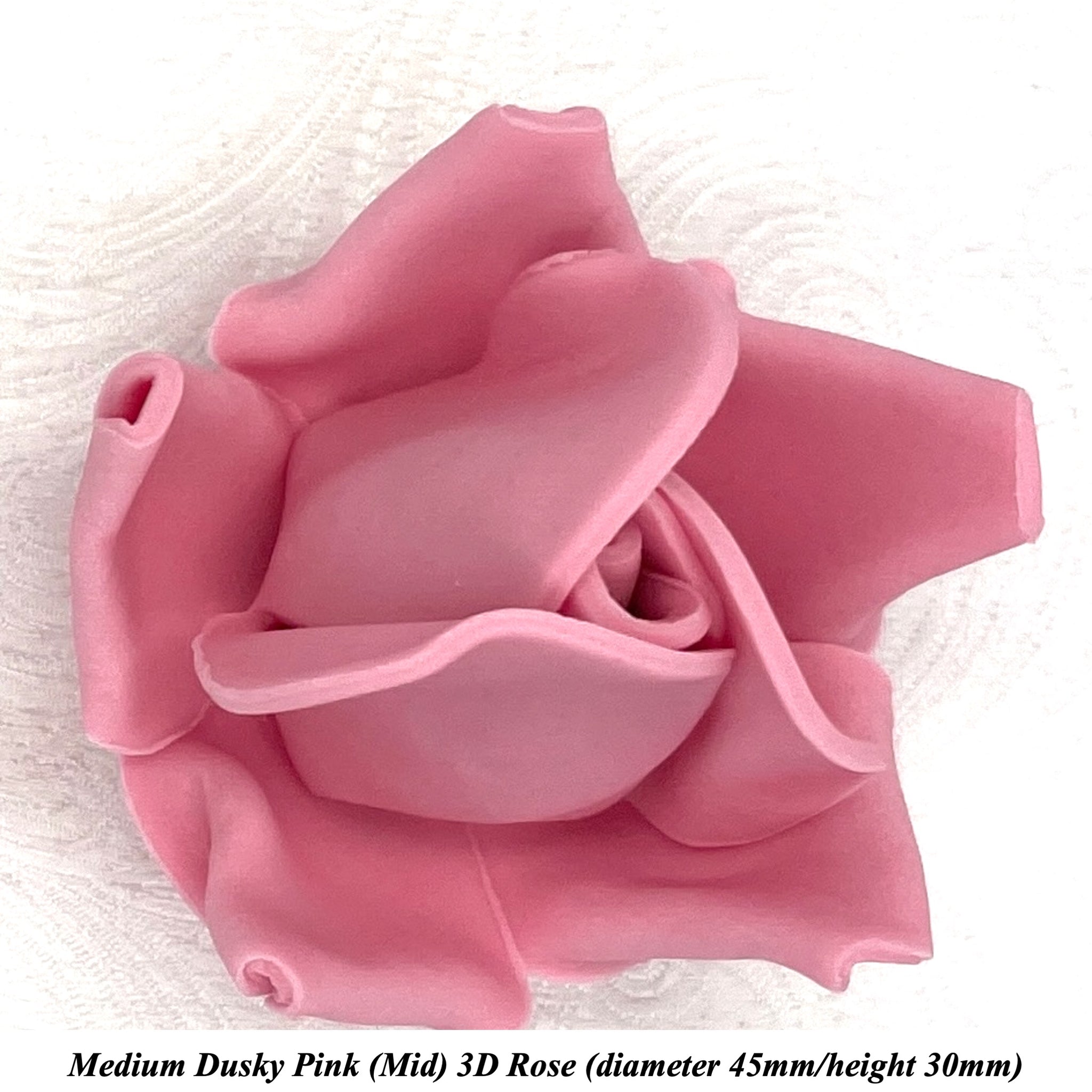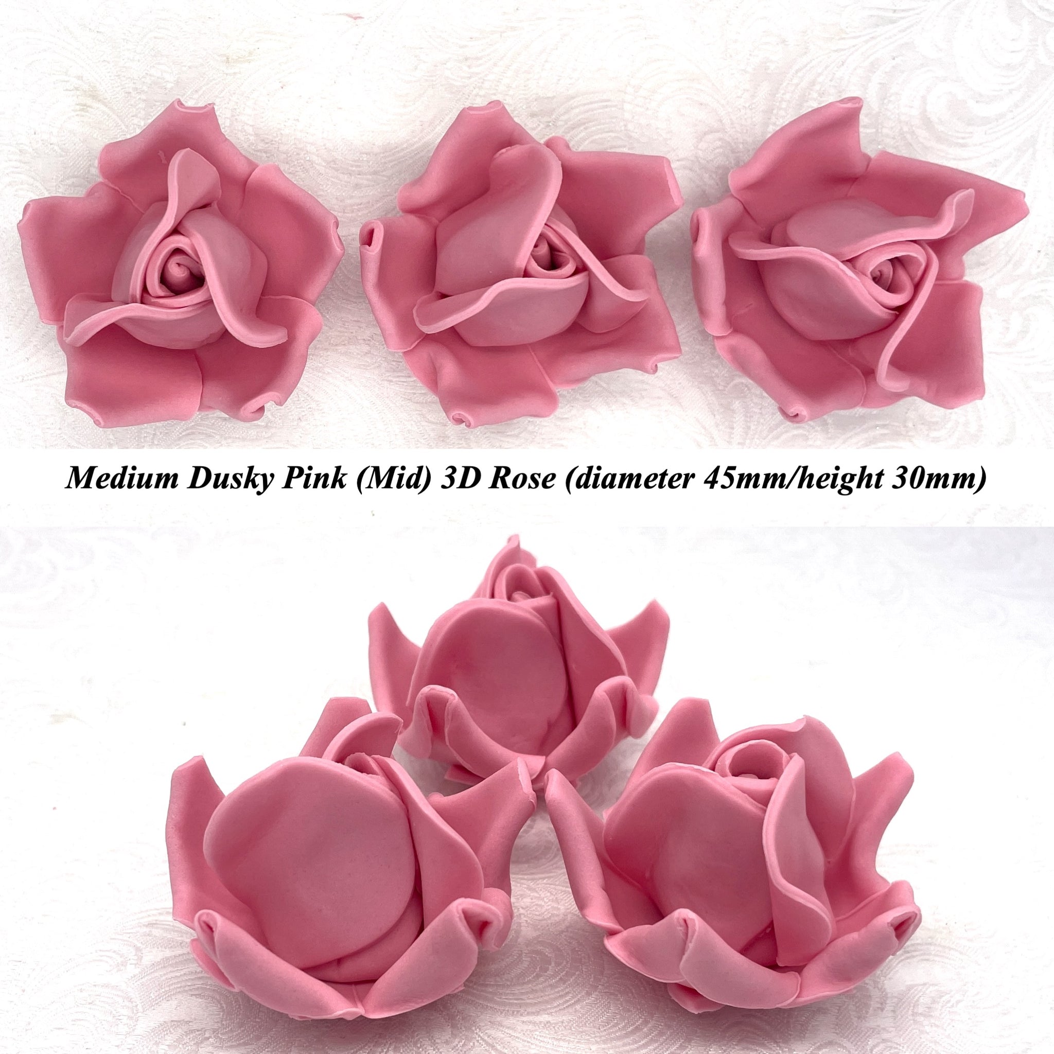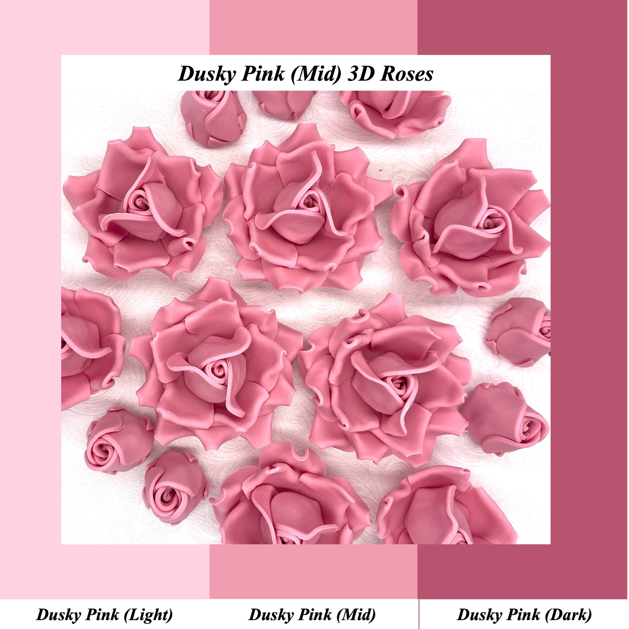 This listing features Non-Wired 3D Roses in the shades Dusky Pink (Light), Dusky Pink (Mid) or Dusky PInk (Dark).