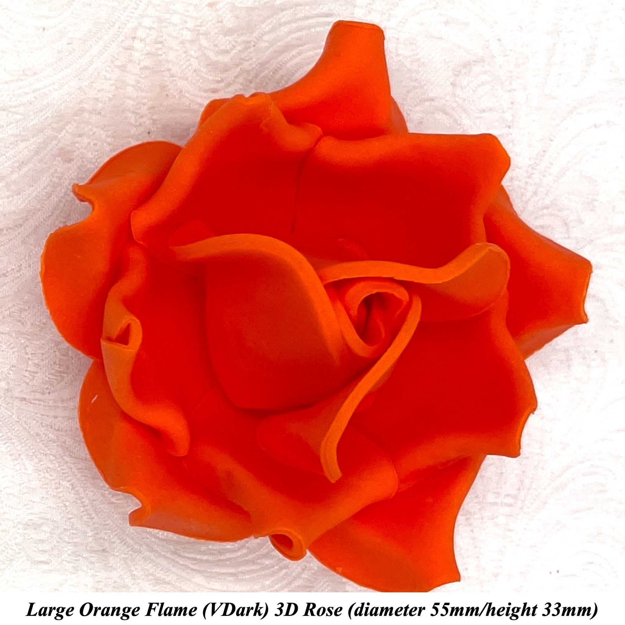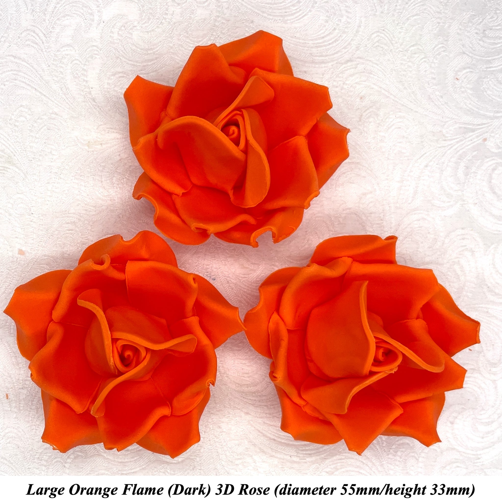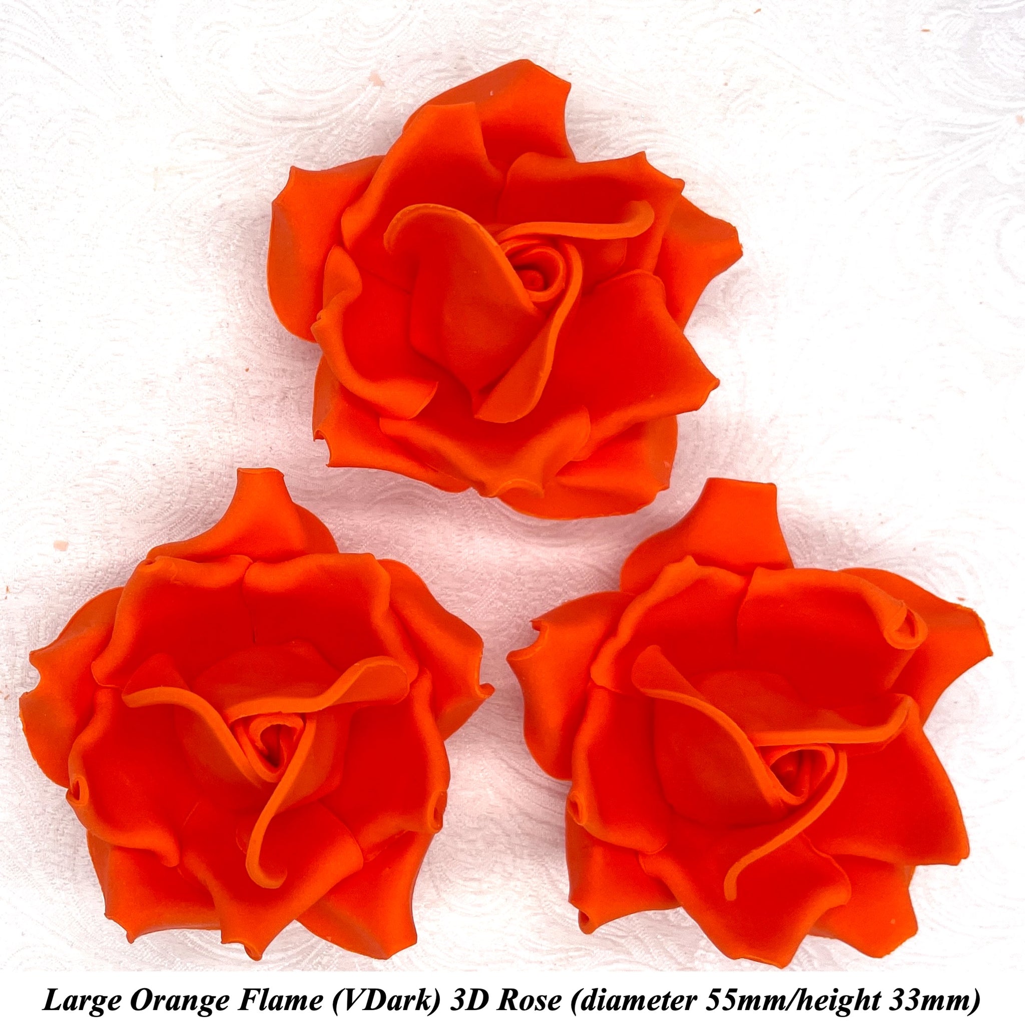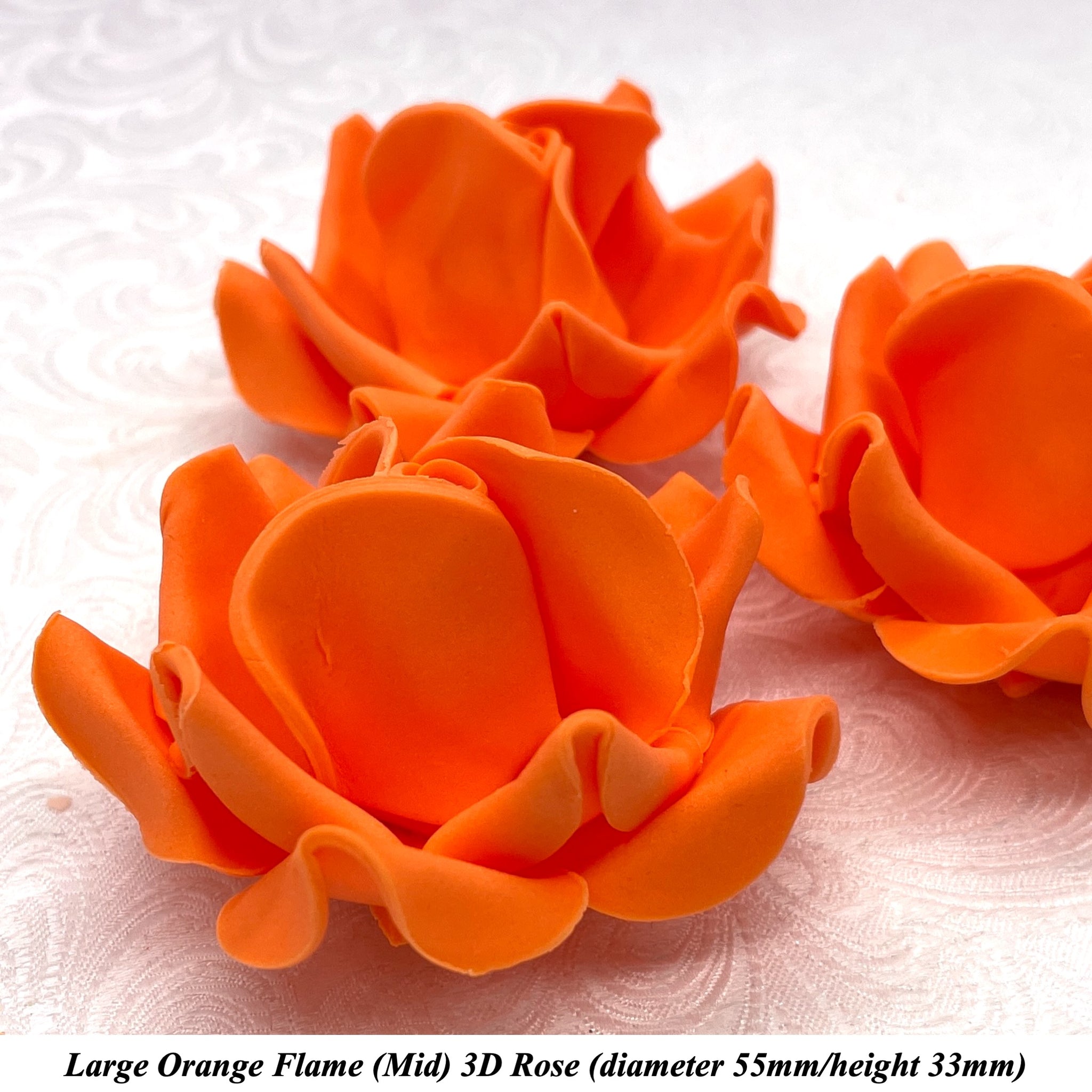 This listing is for Large 3D Sugar Roses in Orange Flame/Mid, Orange Flame/Dark & Orange Flame/Very Dark shades.