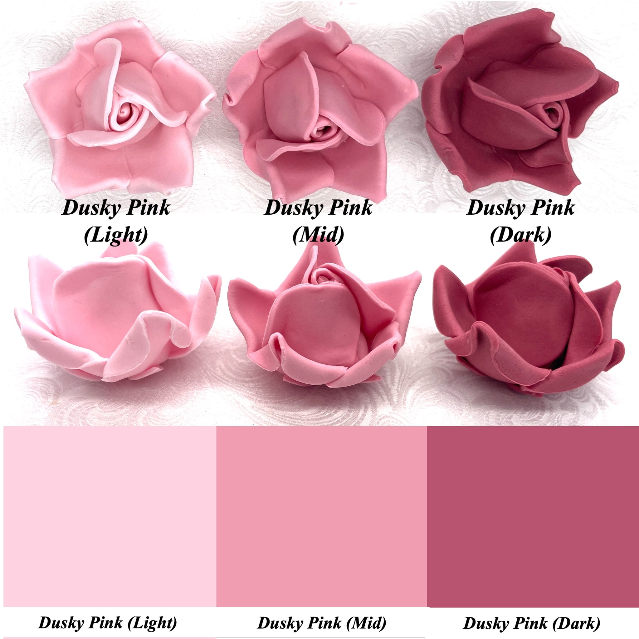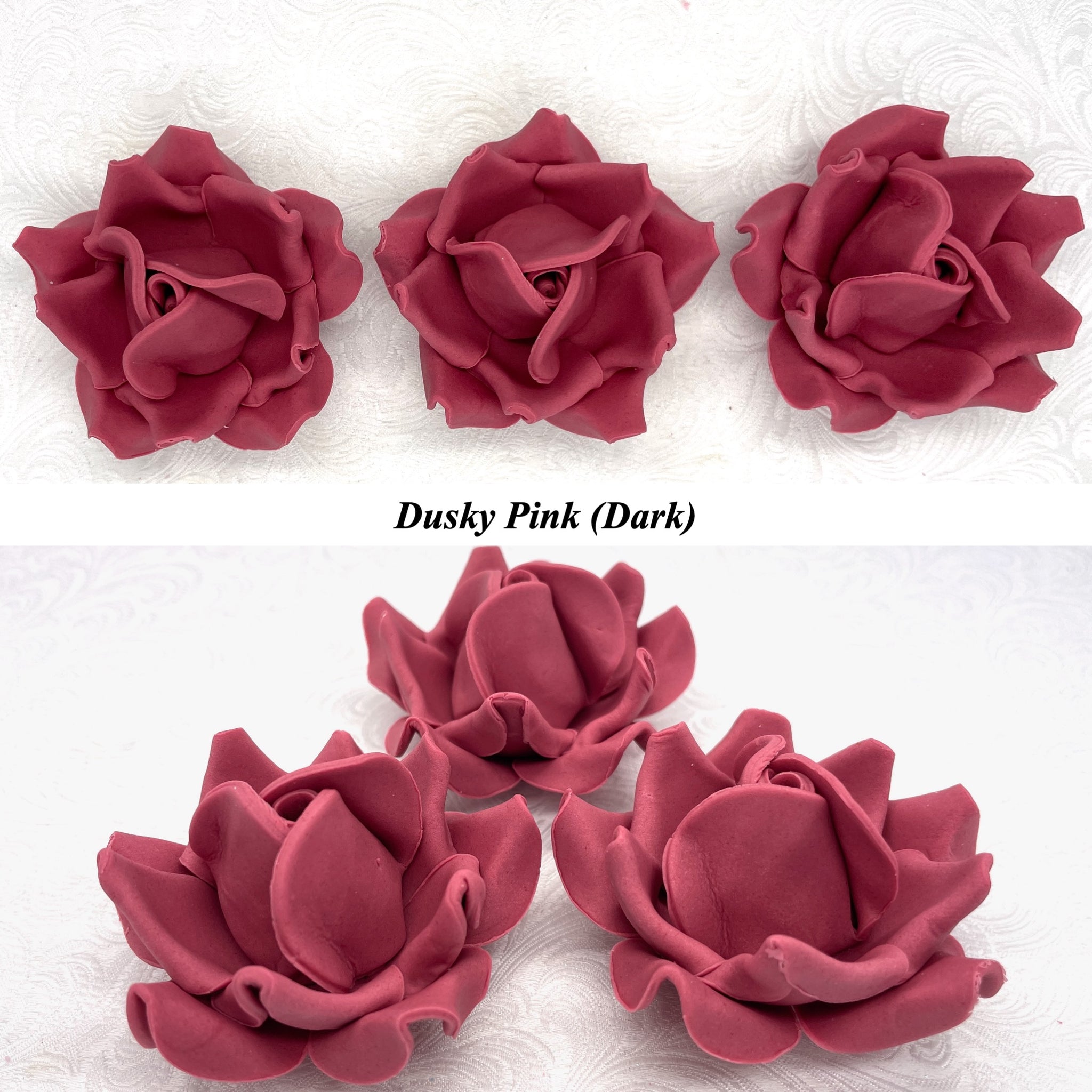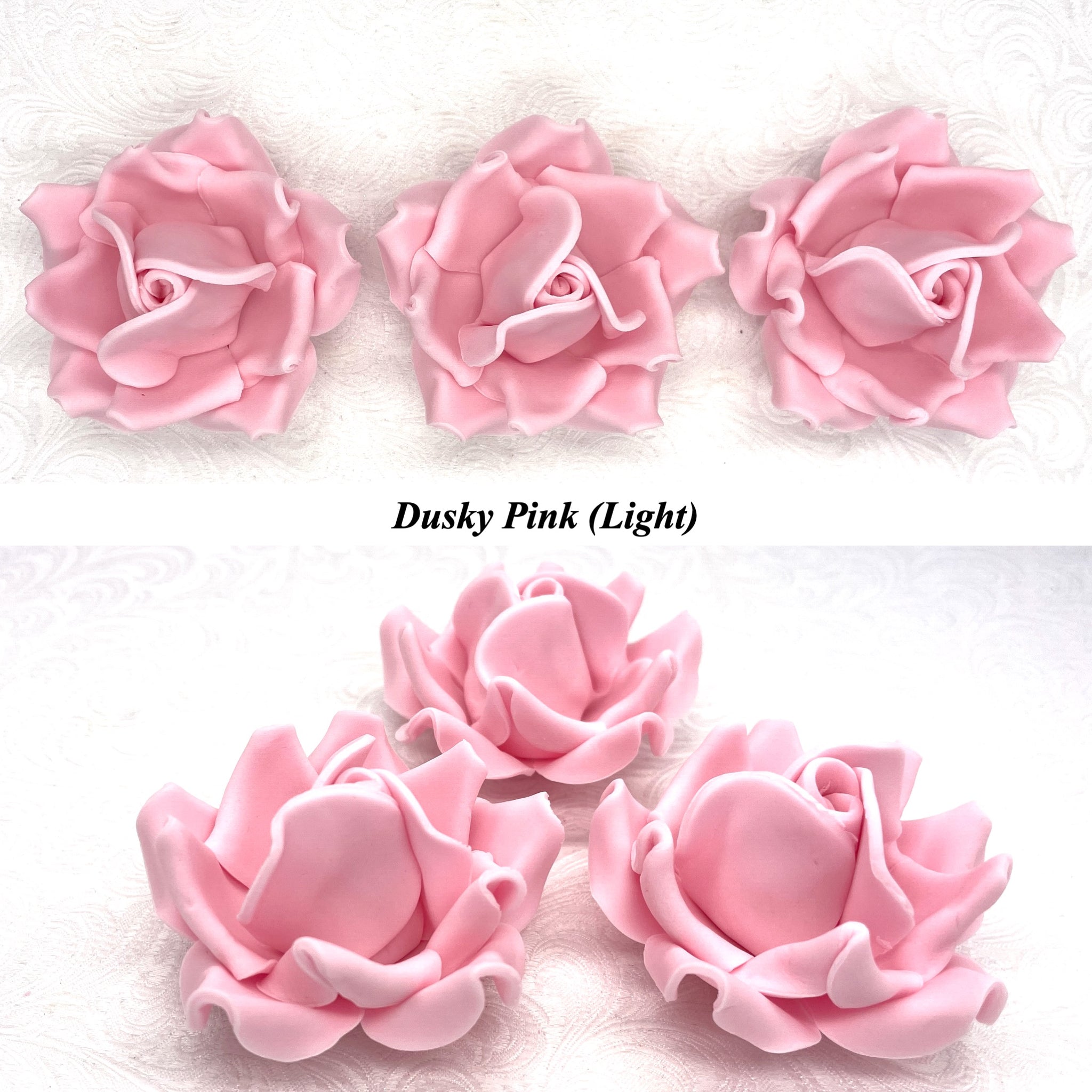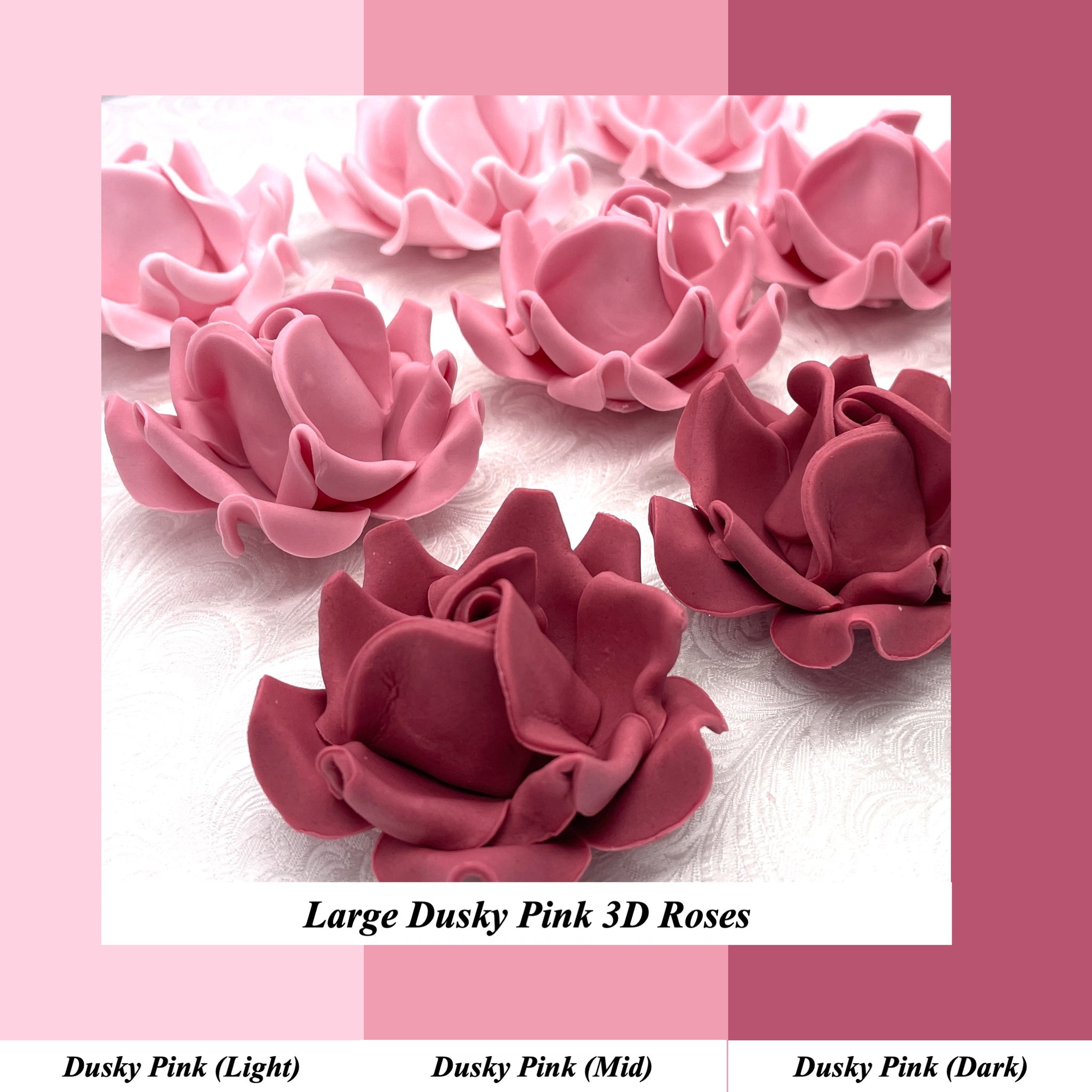 This listing is for Large 3D Sugar Roses in Dusky PInk (Light), Dusky Pink (Mid) or Dusky Pink (Dark) shades.