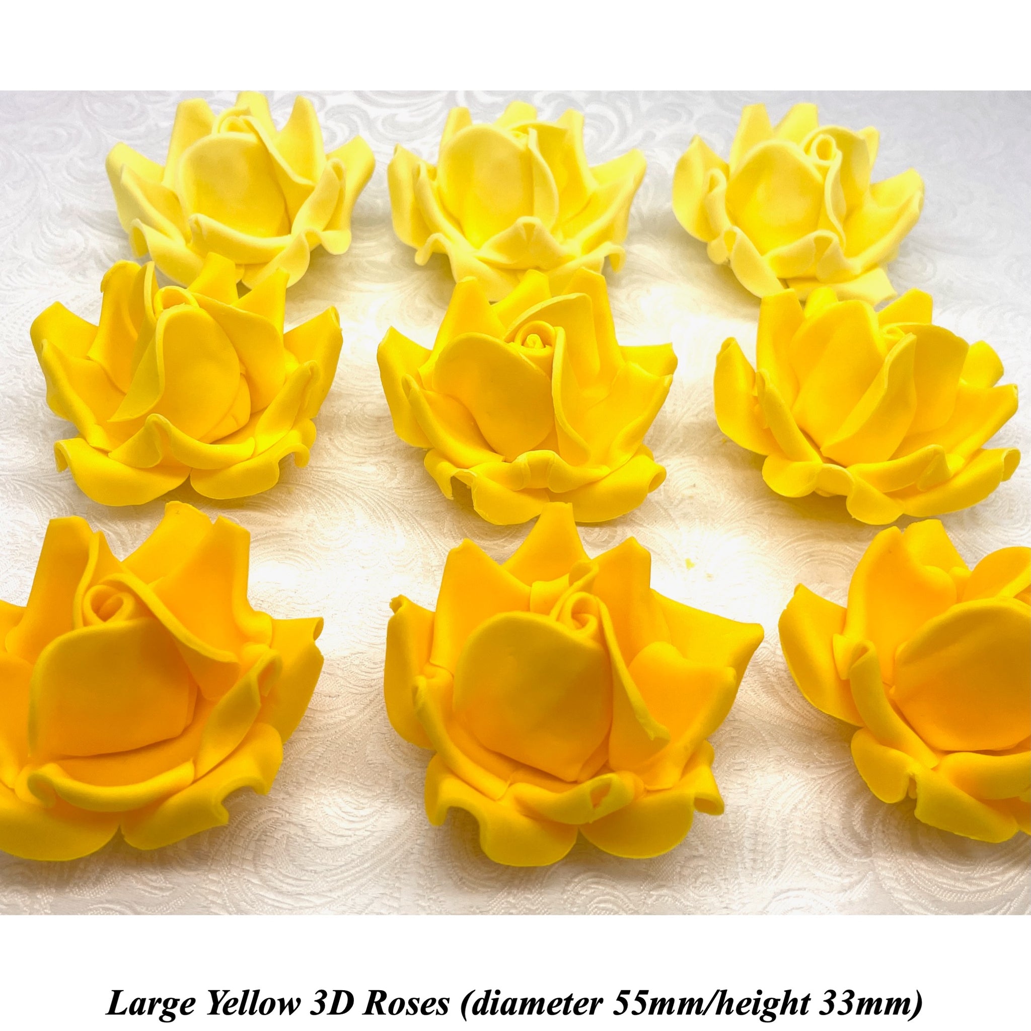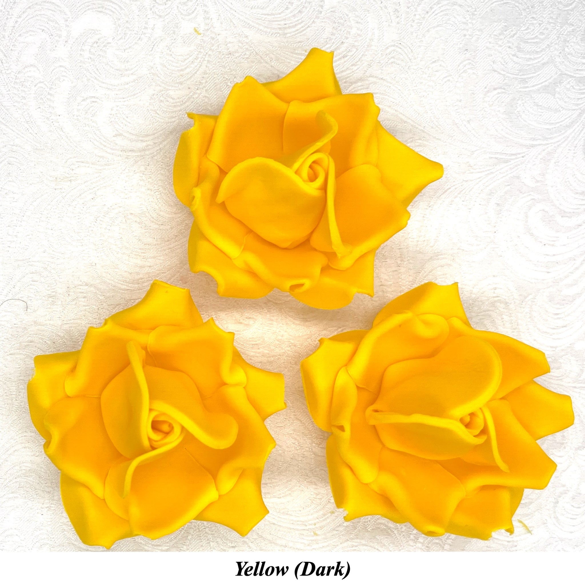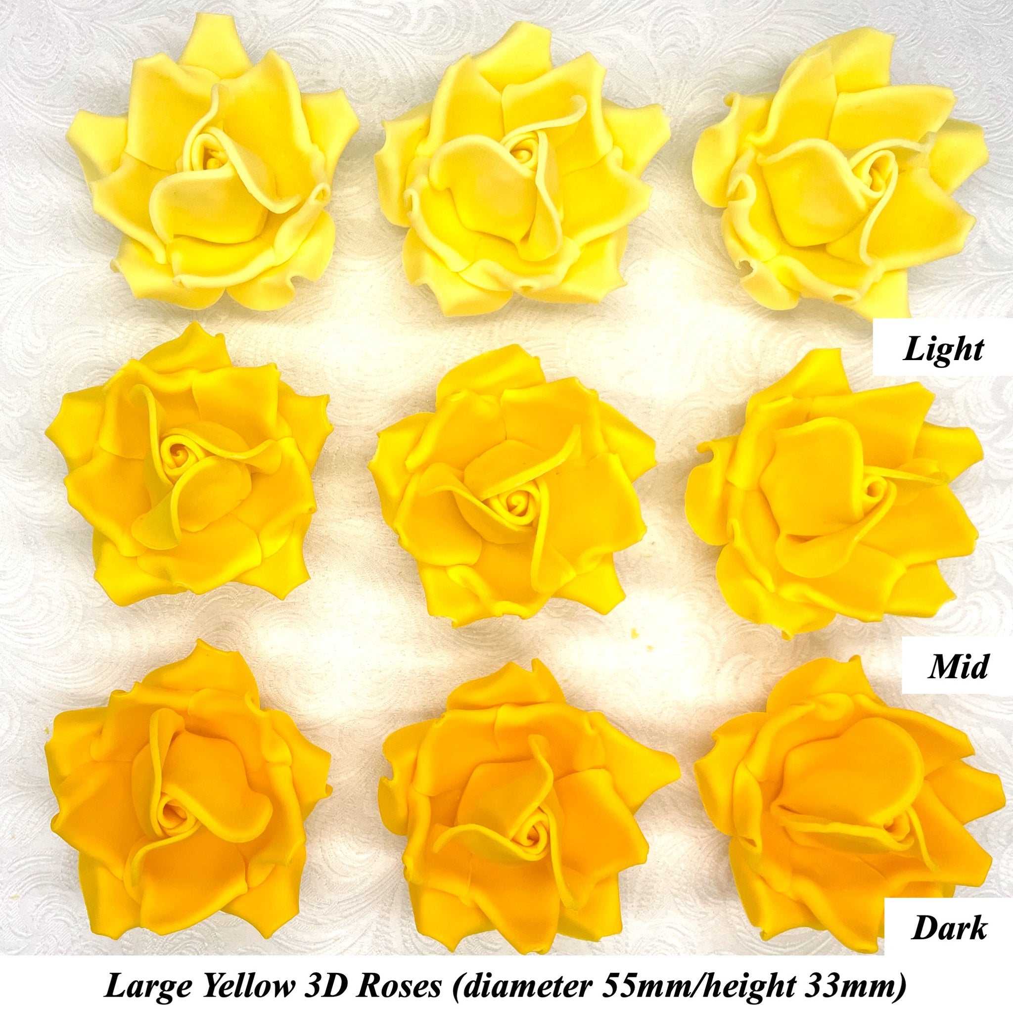 This listing is for Large 3D Sugar Roses in Yellow/Light, Yellow/Mid or Yellow/Dark shades.