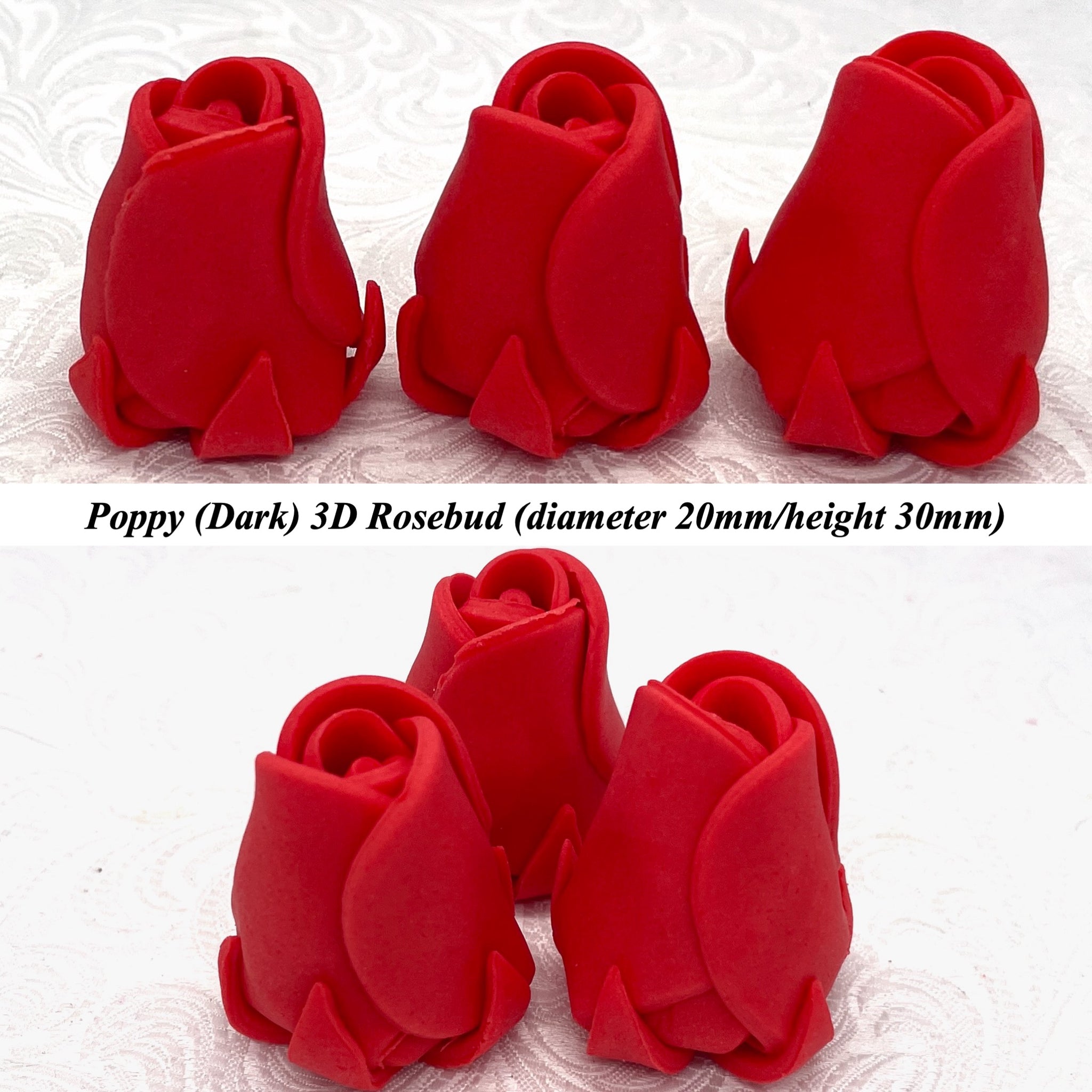 Poppy Red 3D Sugar Non-Wired Roses  3 SHADES 4 SIZES