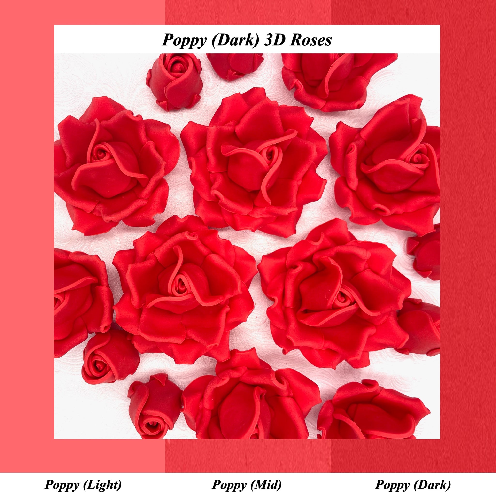 This listing features Non-Wired 3D Roses in the shades Poppy (Light), Poppy (Mid) or Poppy (Dark).
