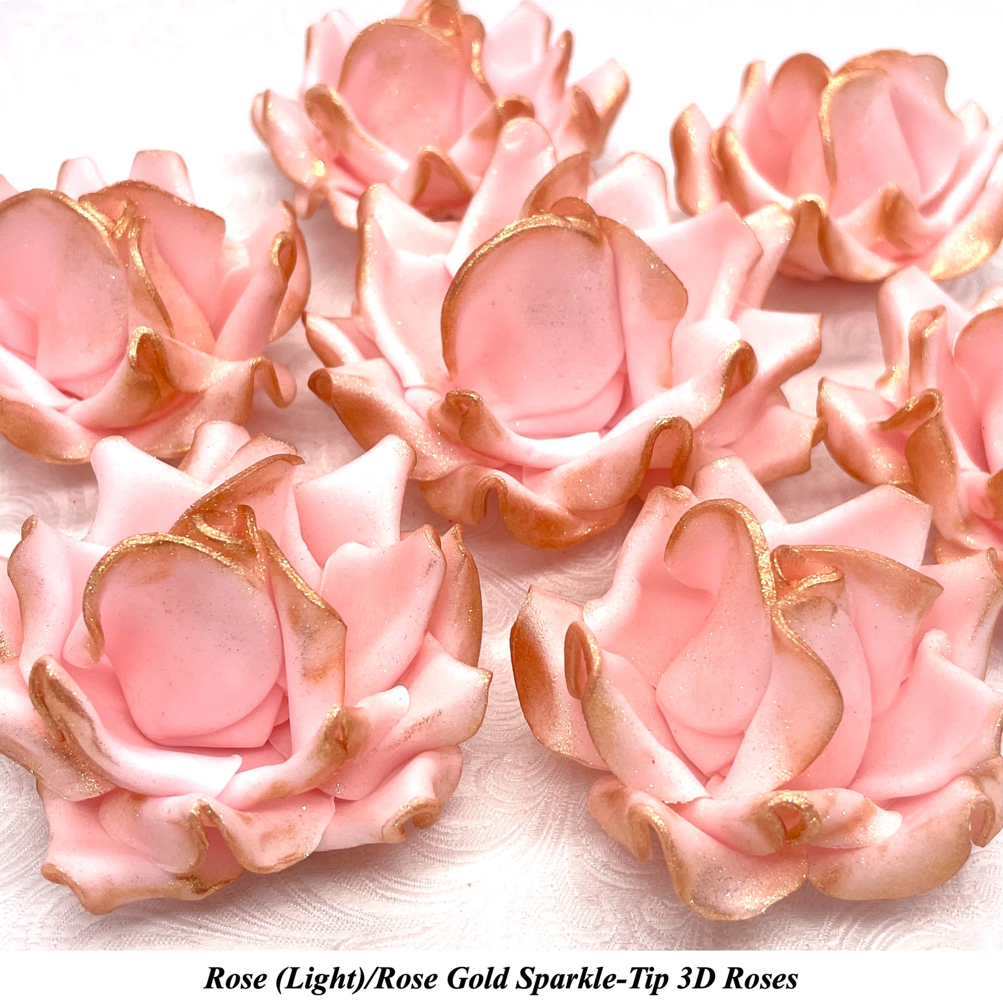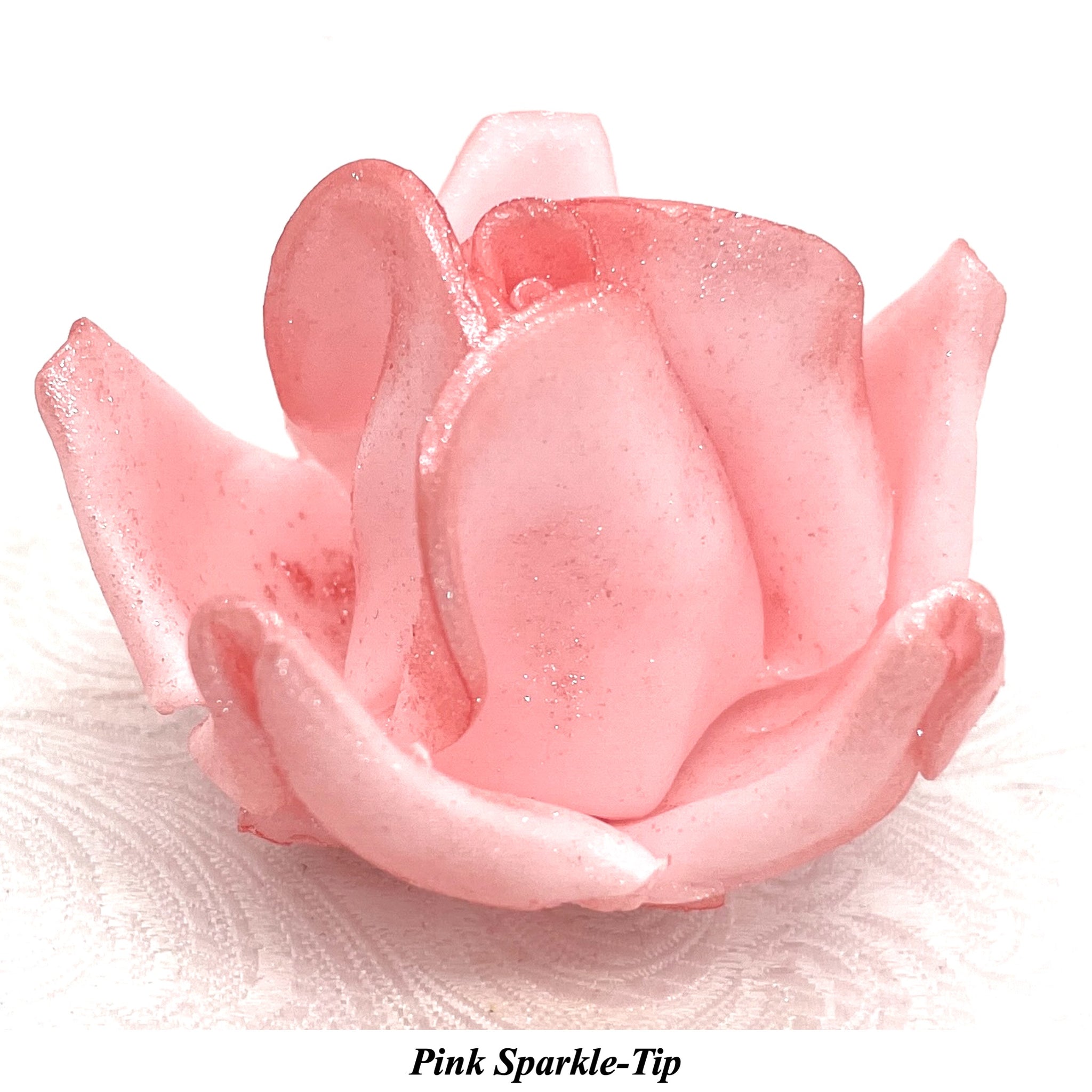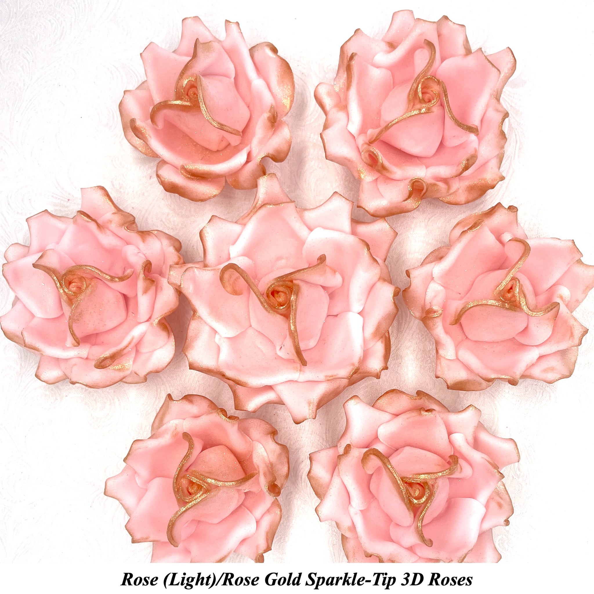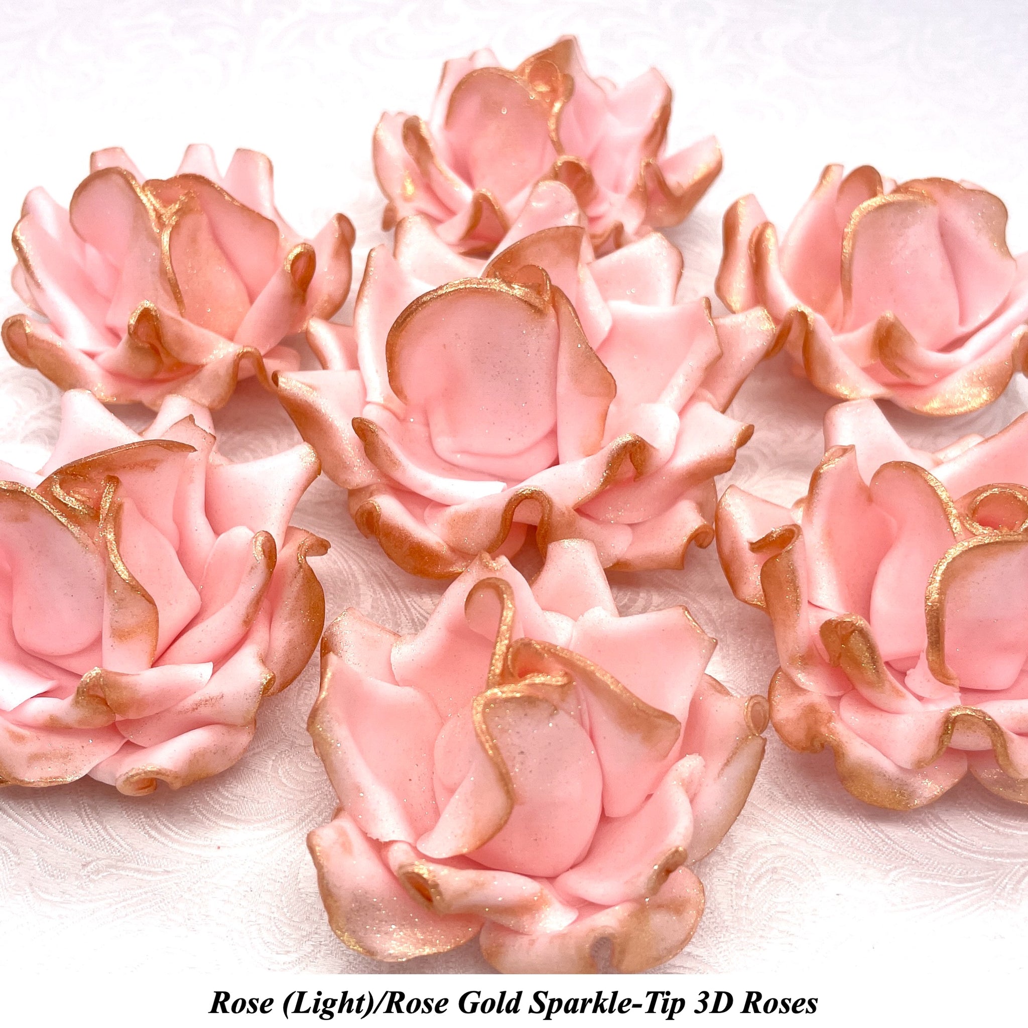 This listing features Rose Gold Sparkle-Tip Sugar Roses in the shade Rose (Light).