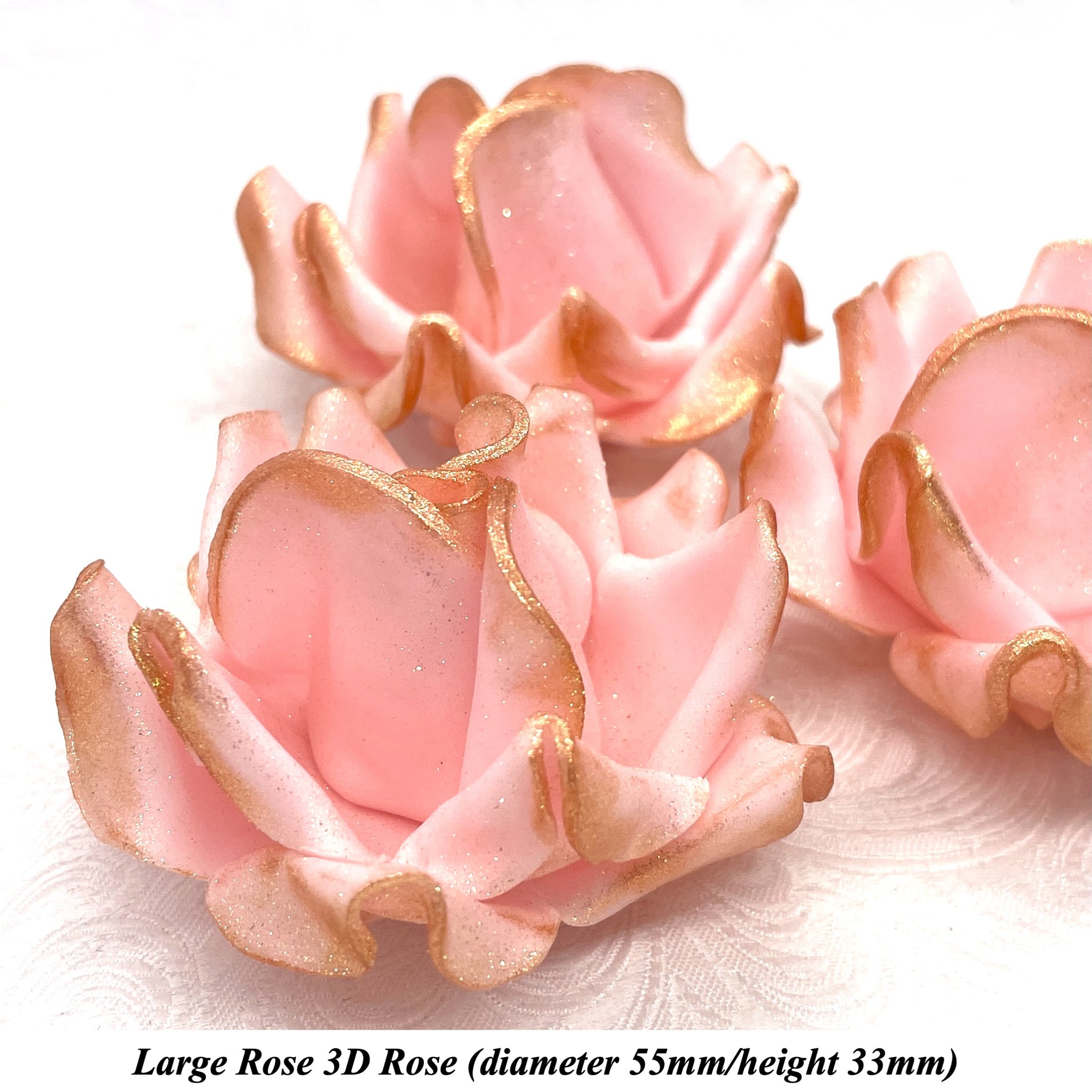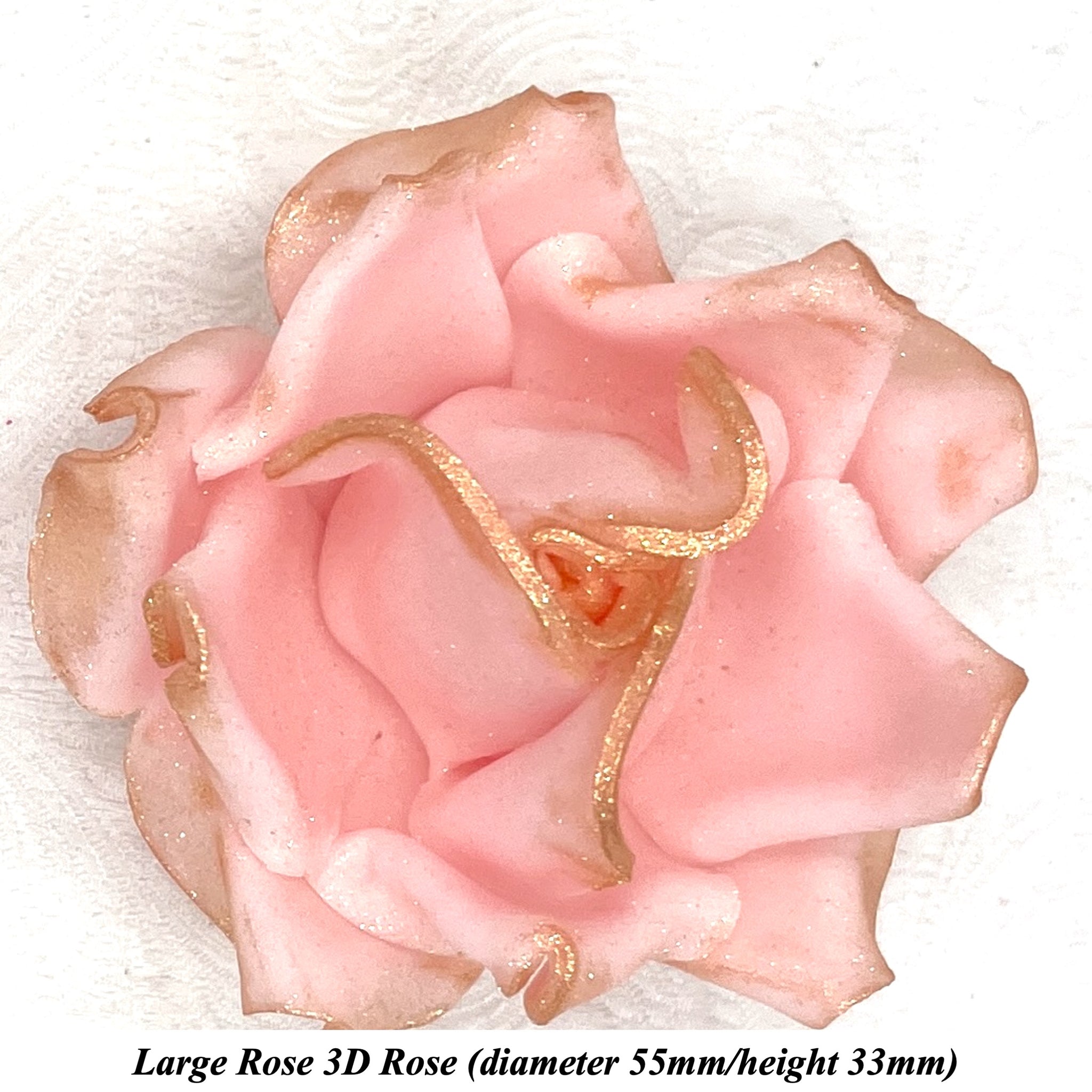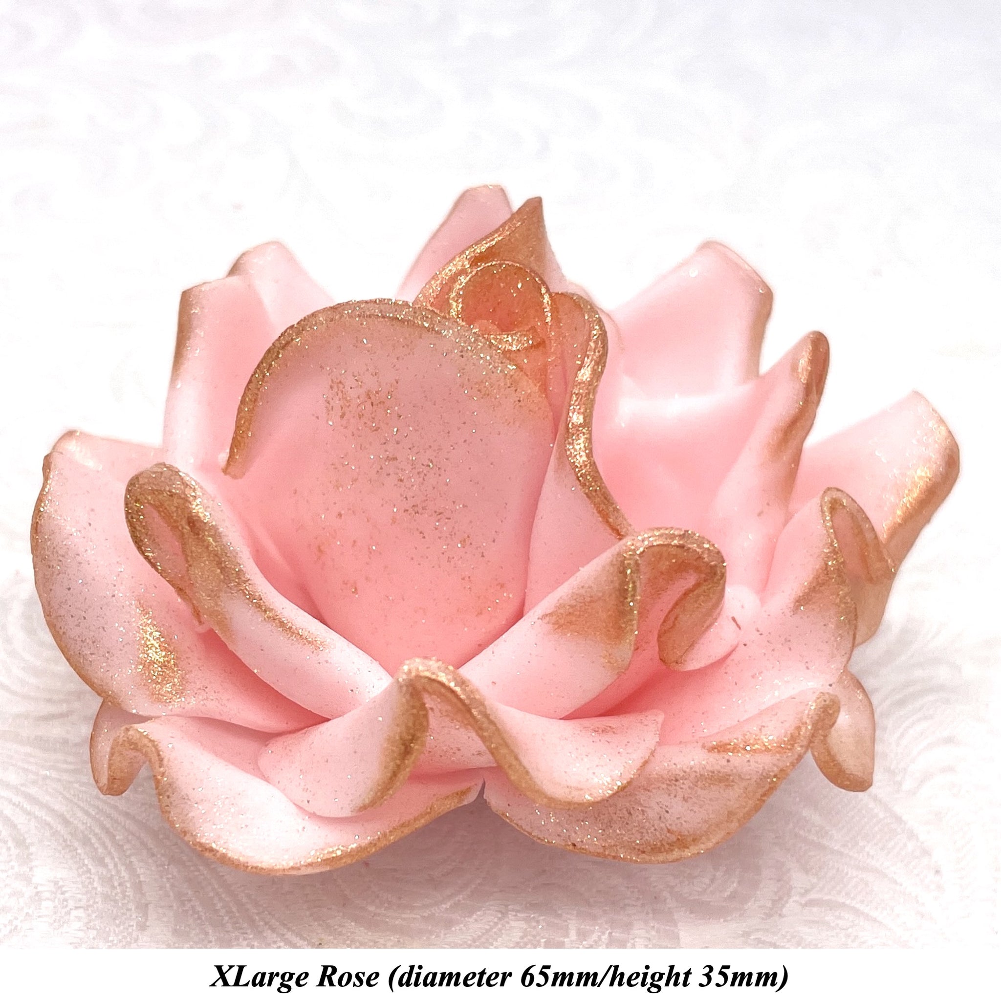 Large Rose - 55mm diameter/ 33mm height/ 16 petals XLarge Rose - 65mm diameter/ 35mm height/ 21 petals XLarge+ (Super) Rose - 75mm diameter/40mm height /21 petals (larger-petal rose)