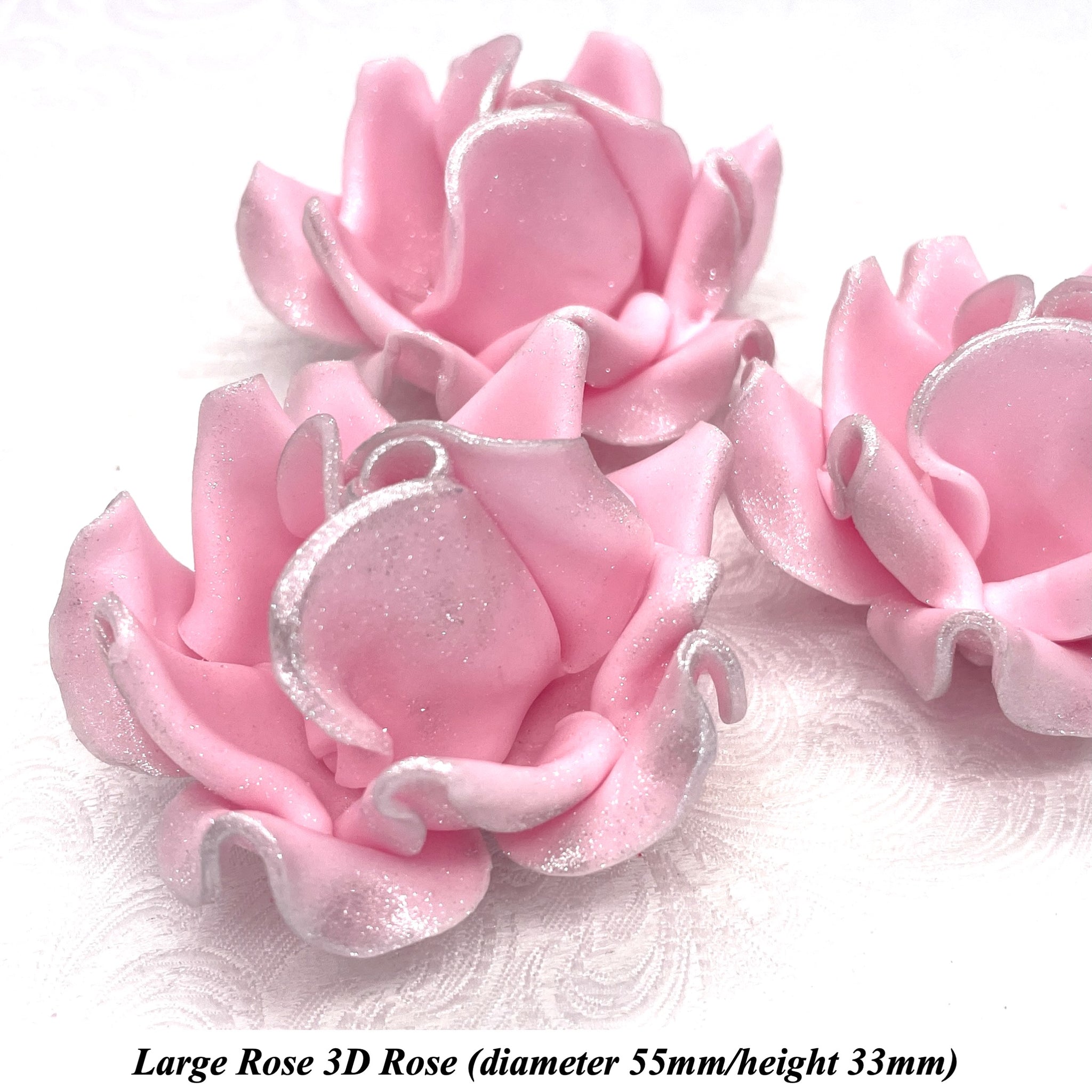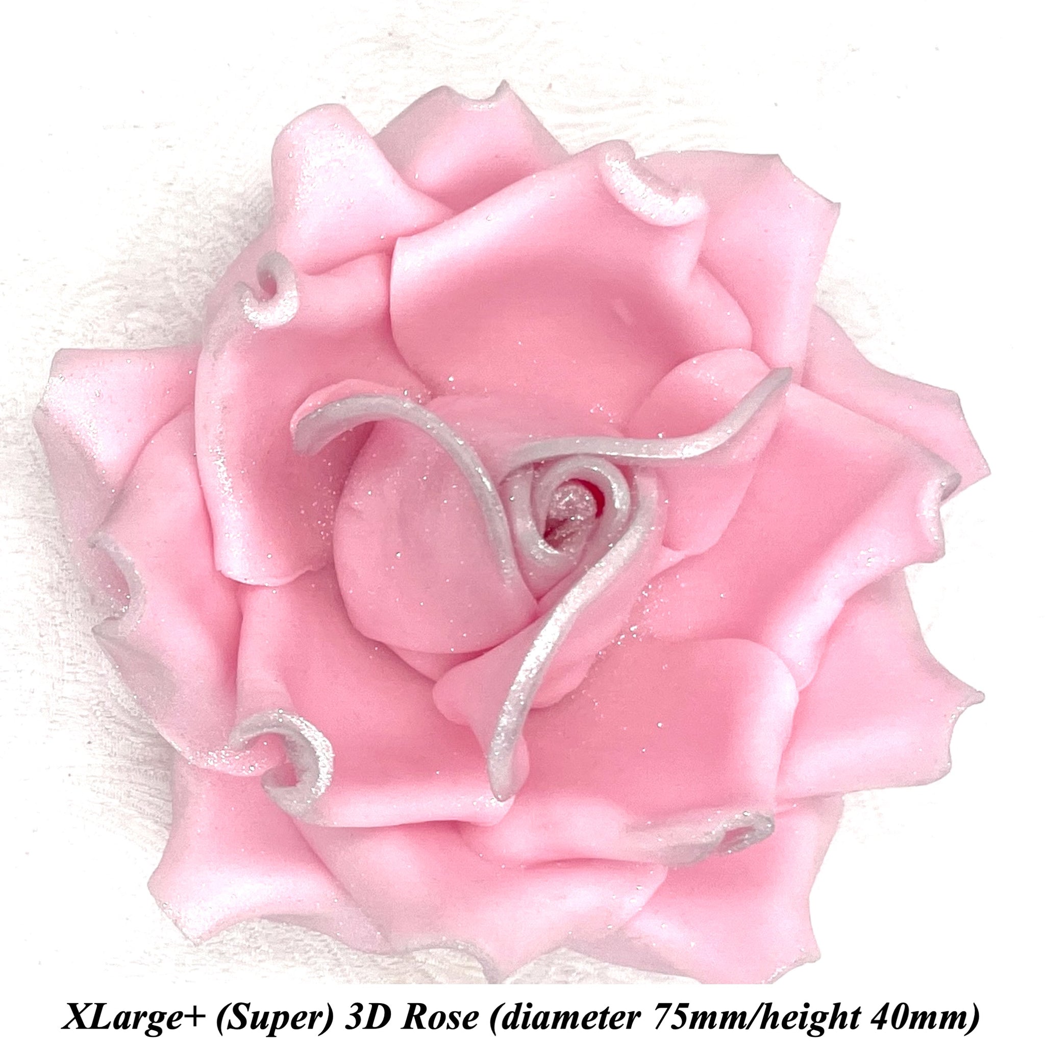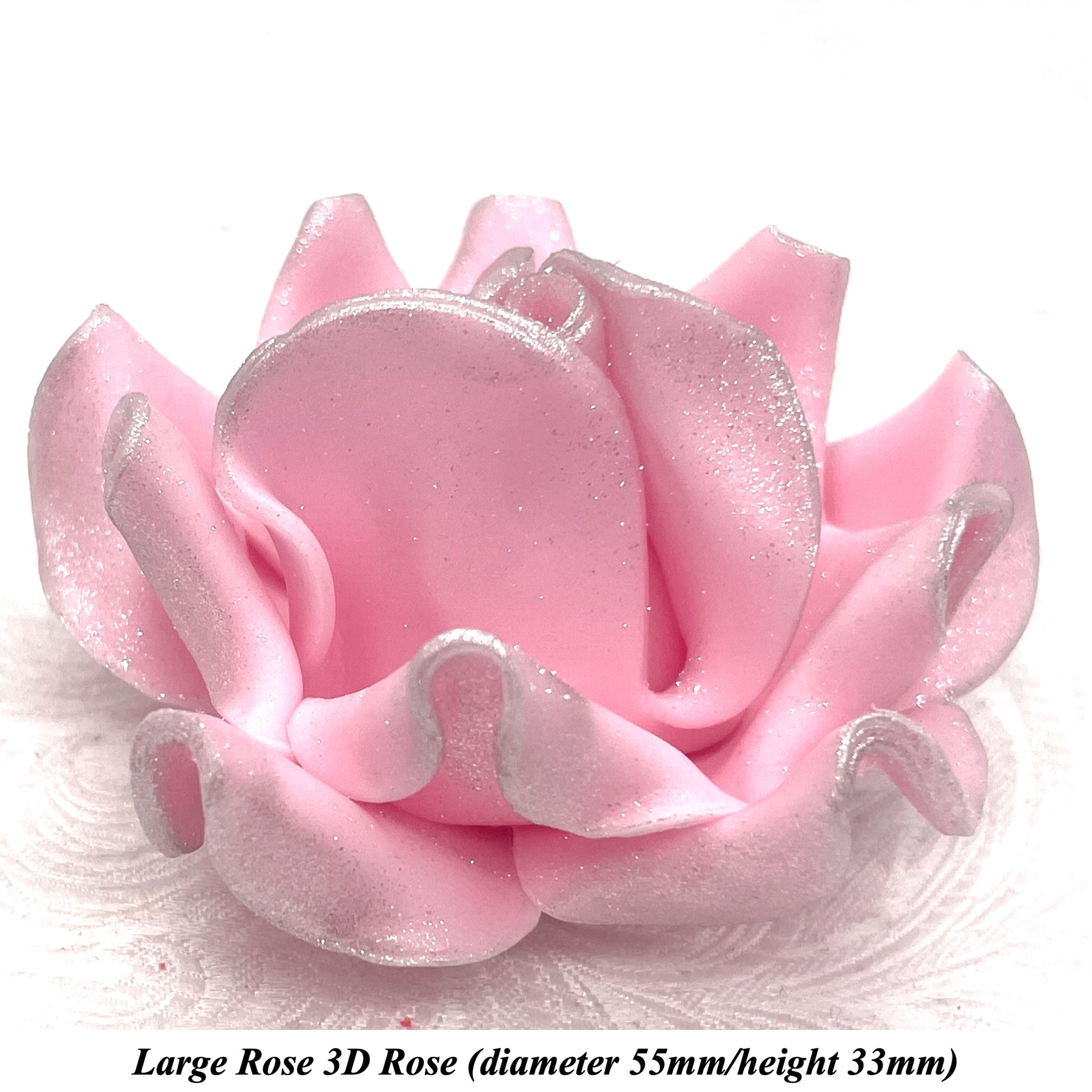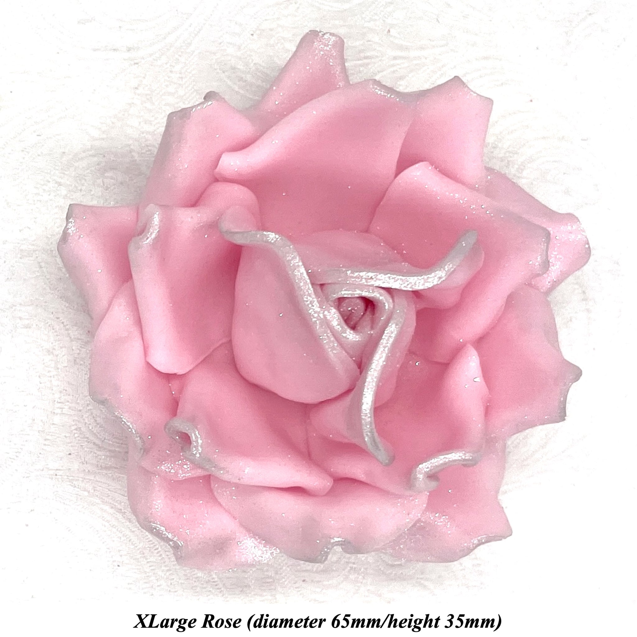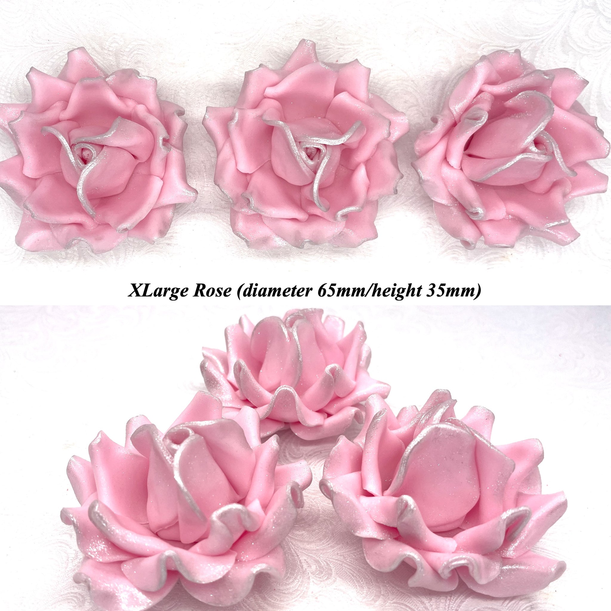 Large Rose - 55mm diameter/ 33mm height/ 16 petals XLarge Rose - 65mm diameter/ 35mm height/ 21 petals XLarge+ (Super) Rose - 75mm diameter/40mm height /21 petals (larger-petal rose)